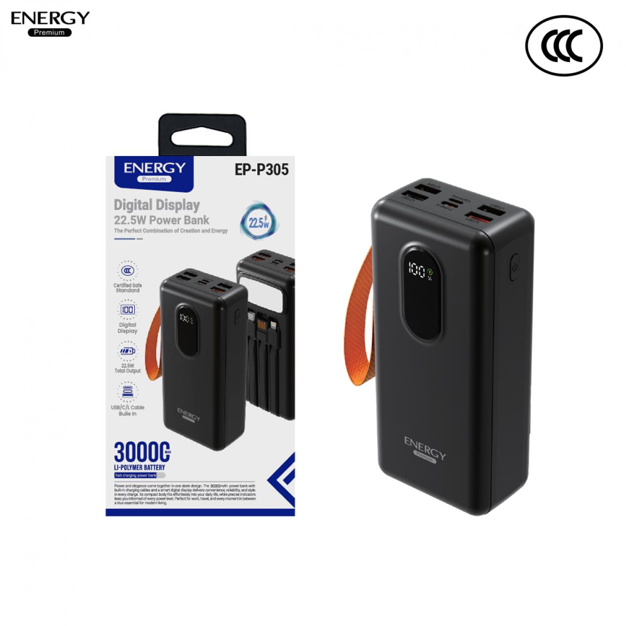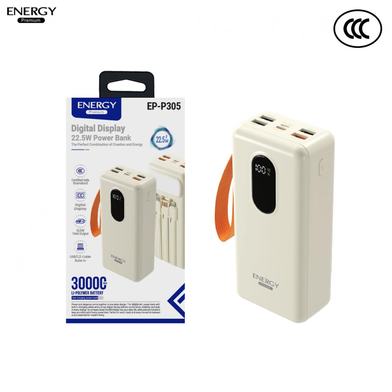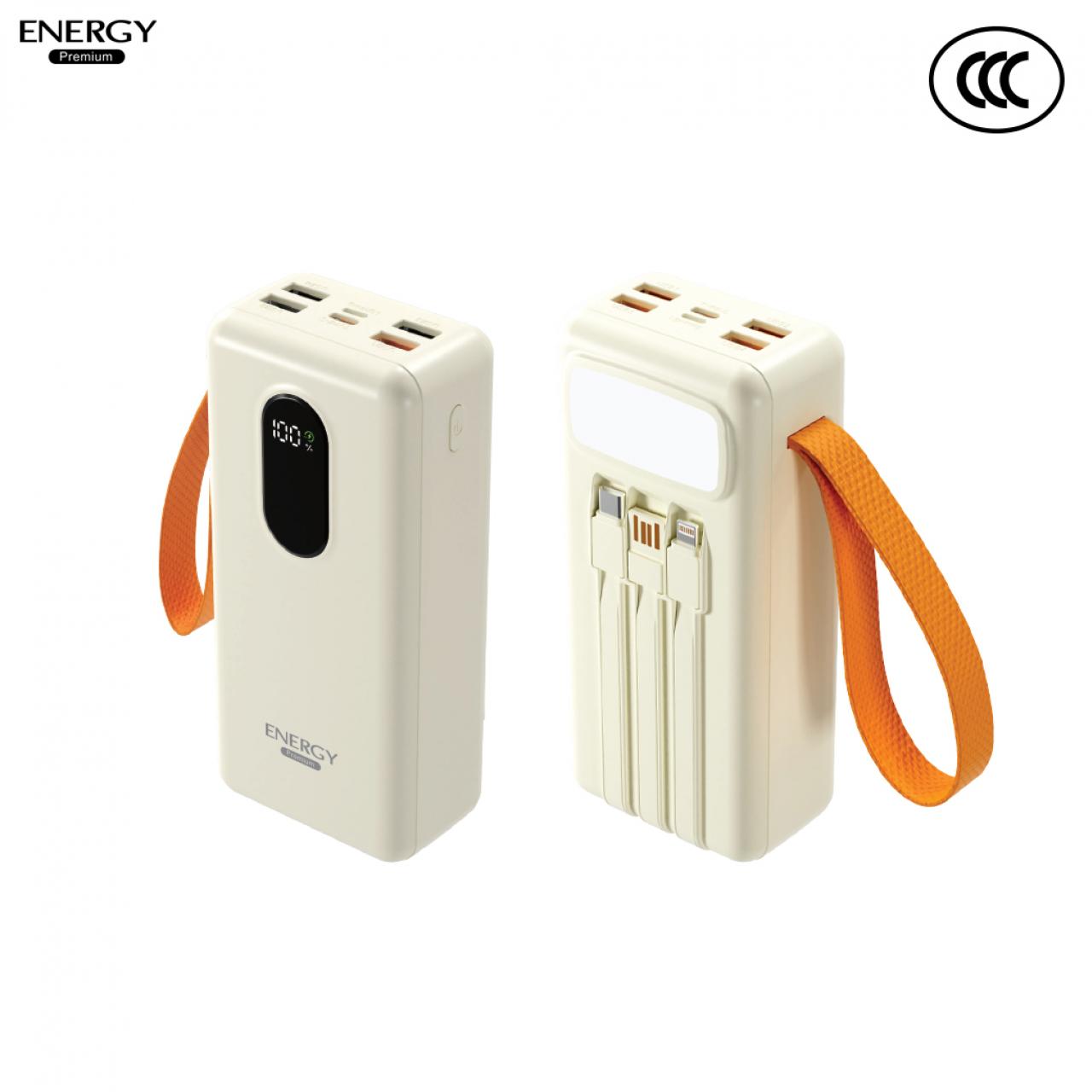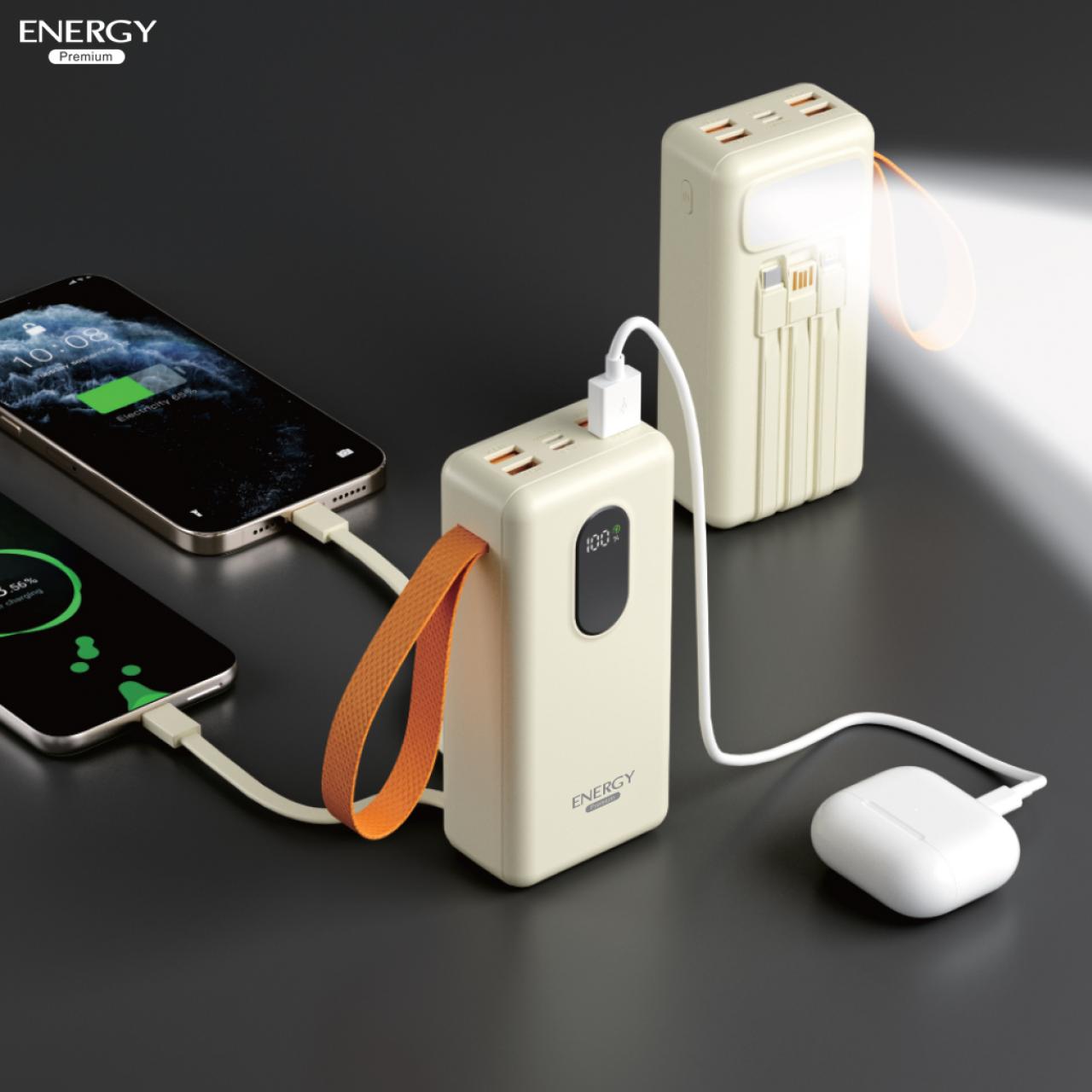 พาวเวอร์แบงค์ ความจุ 30000mah ชาร์จเร็ว 22.5W 3 สายชาร์จ และไฟฉายในตัว