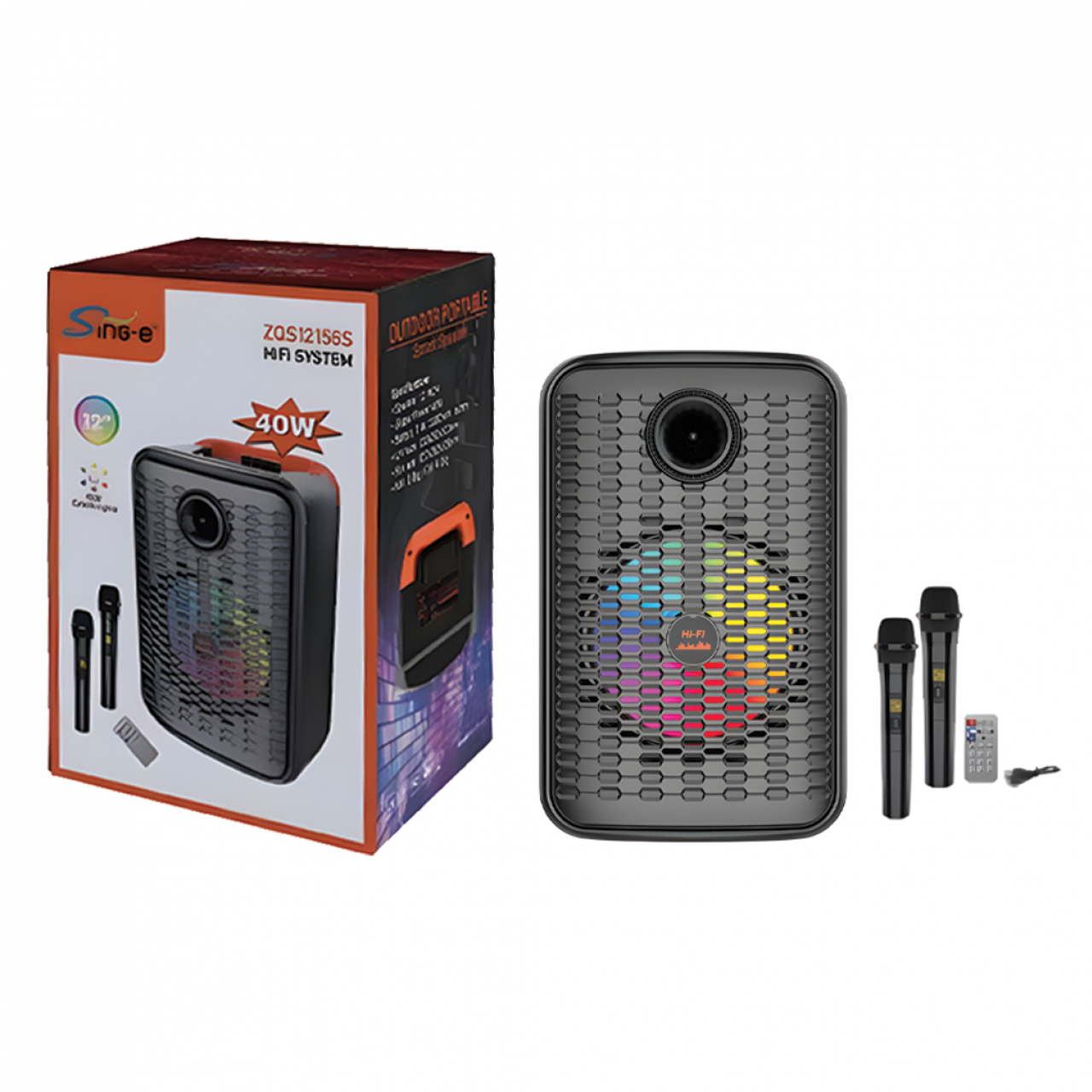 : ลำโพง 8W ขนาด 40.7*27.4*24.5CM พร้อมไมค์โครโฟนและรีโมตคอนโทรล