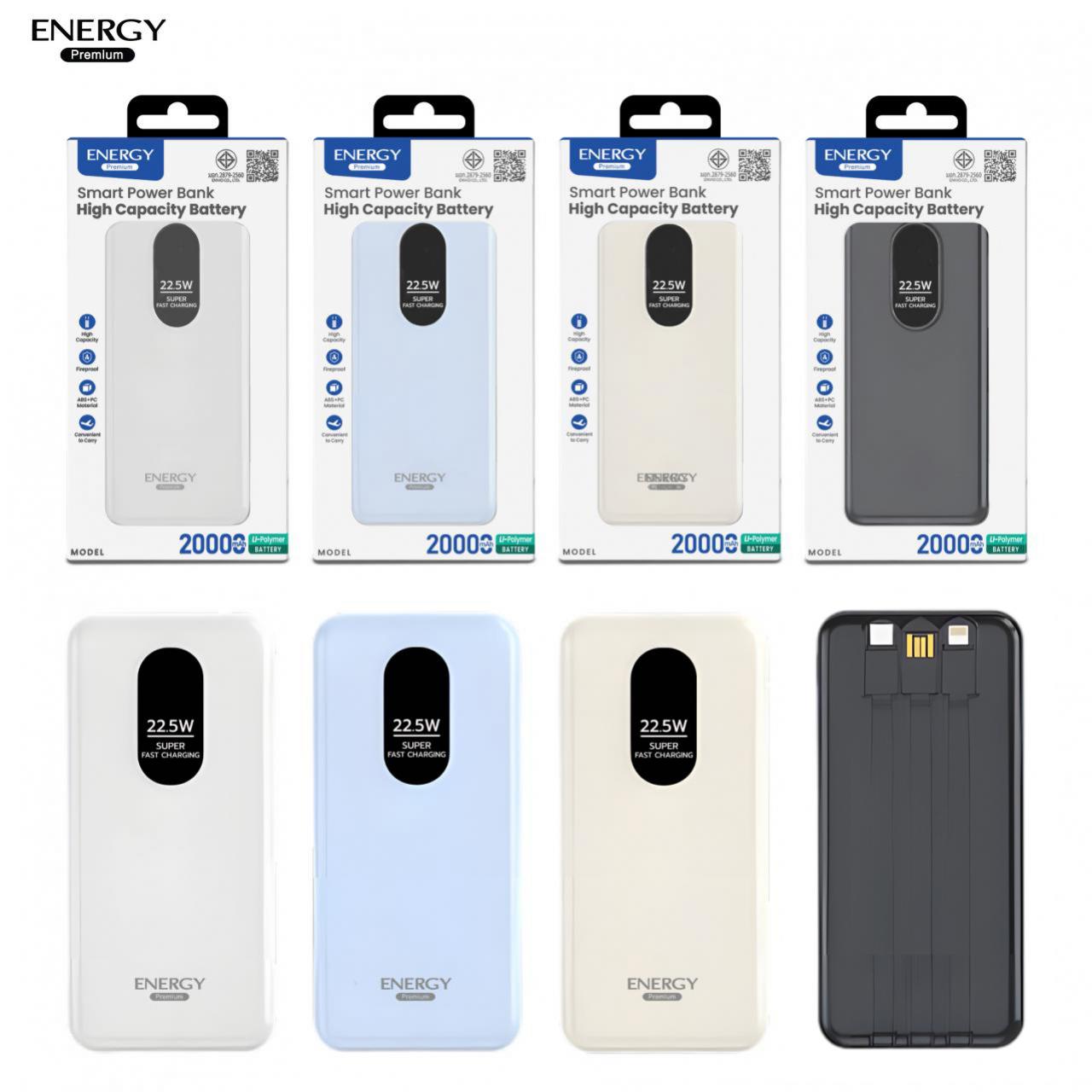 : พาวเวอร์แบงค์ ความจุ 20000mAh ชาร์จเร็ว 22.5W 3 สายชาร์จในตัว