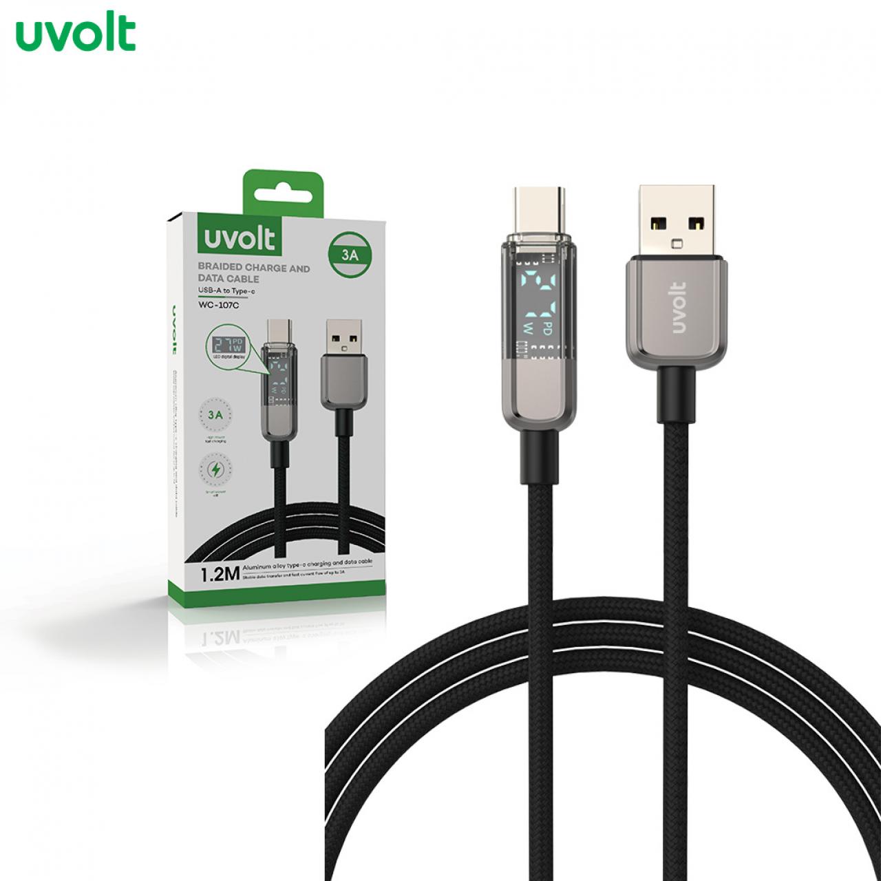 : Uvolt Braided Charge And Data Cable USB A to Type C WC-107C-Black