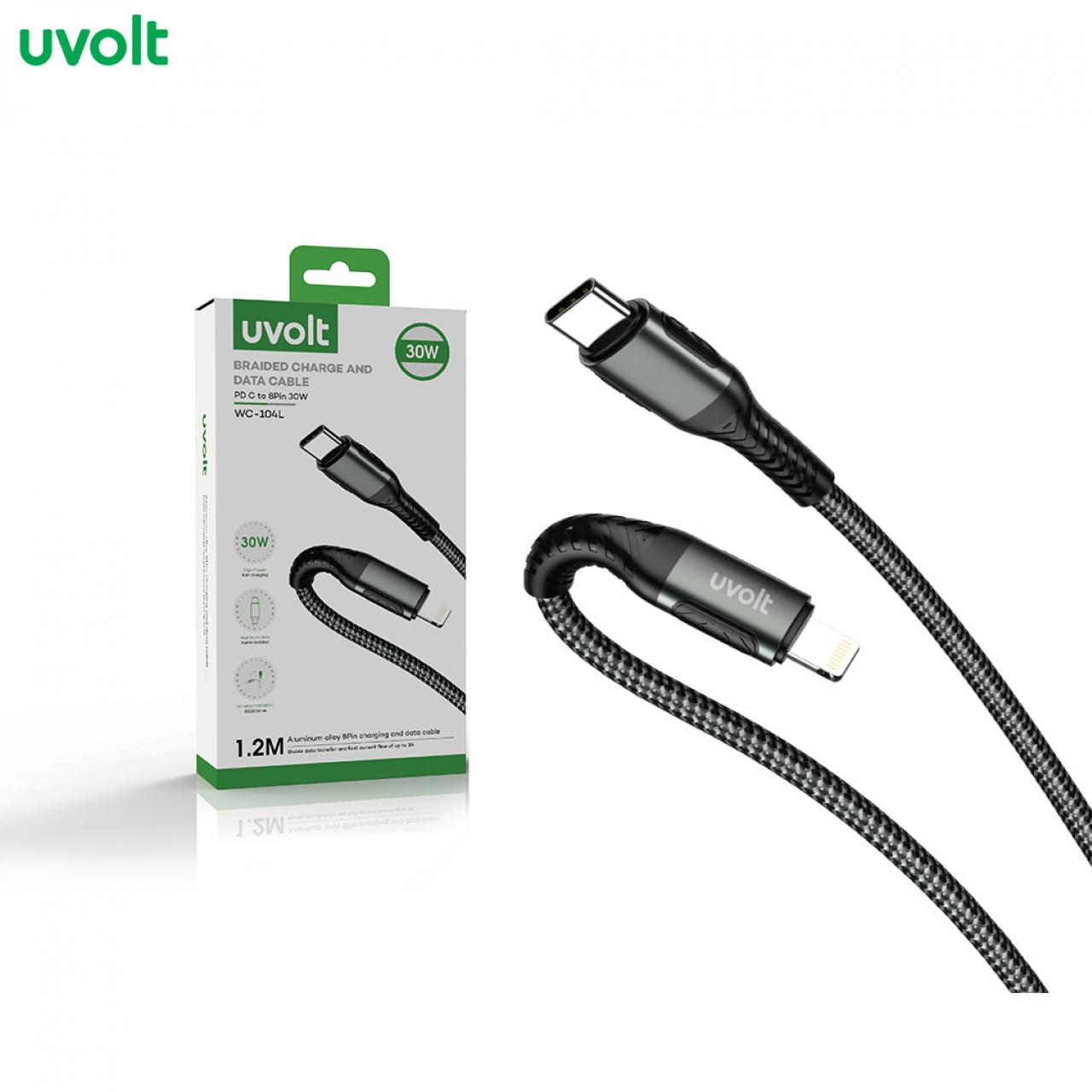 : Uvolt Braided Charge And Data CAble USB C to 8PIN 30W WC-104L-Black