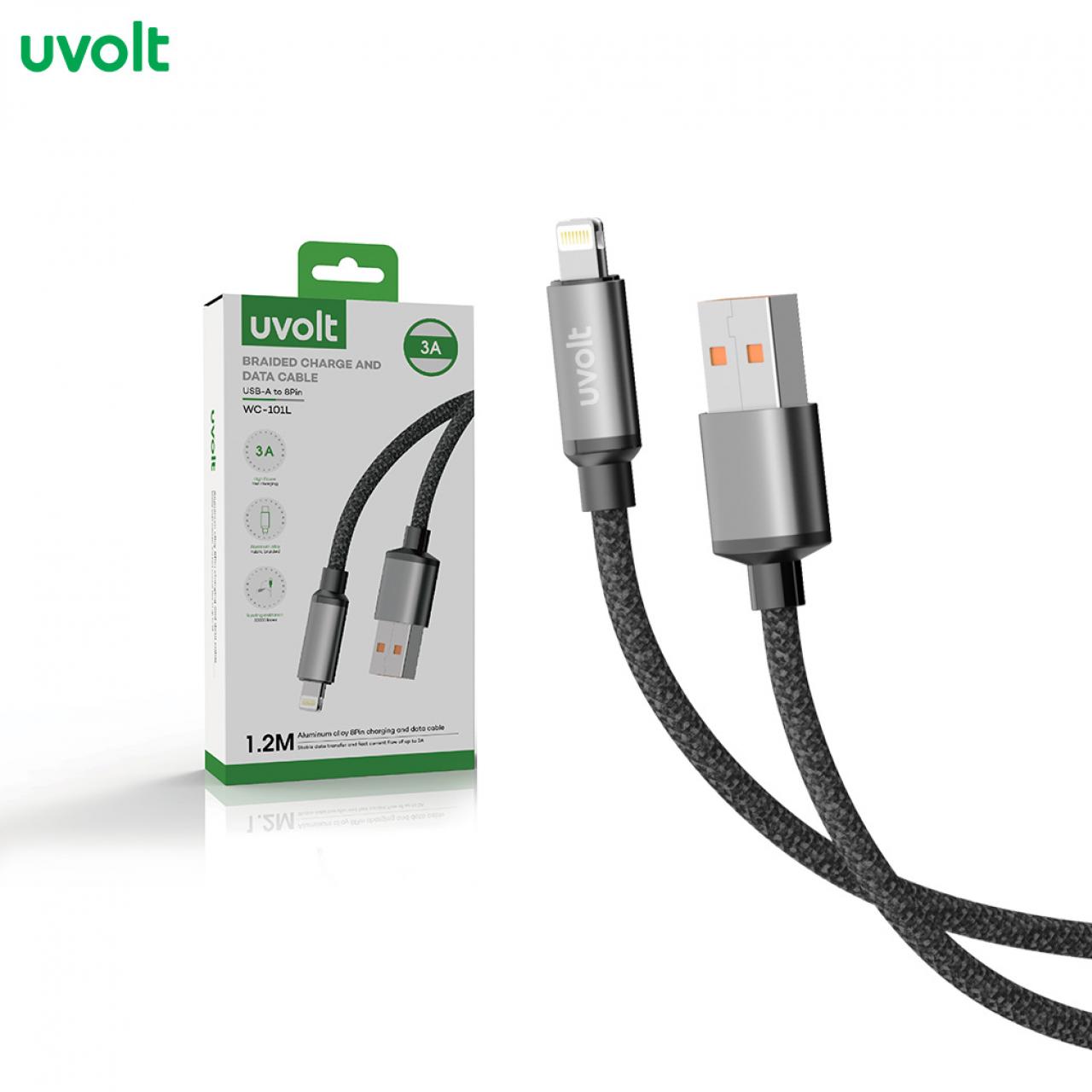 : Uvolt Braided Charge And Data CAble USB A to 8pin WC-101L-Black