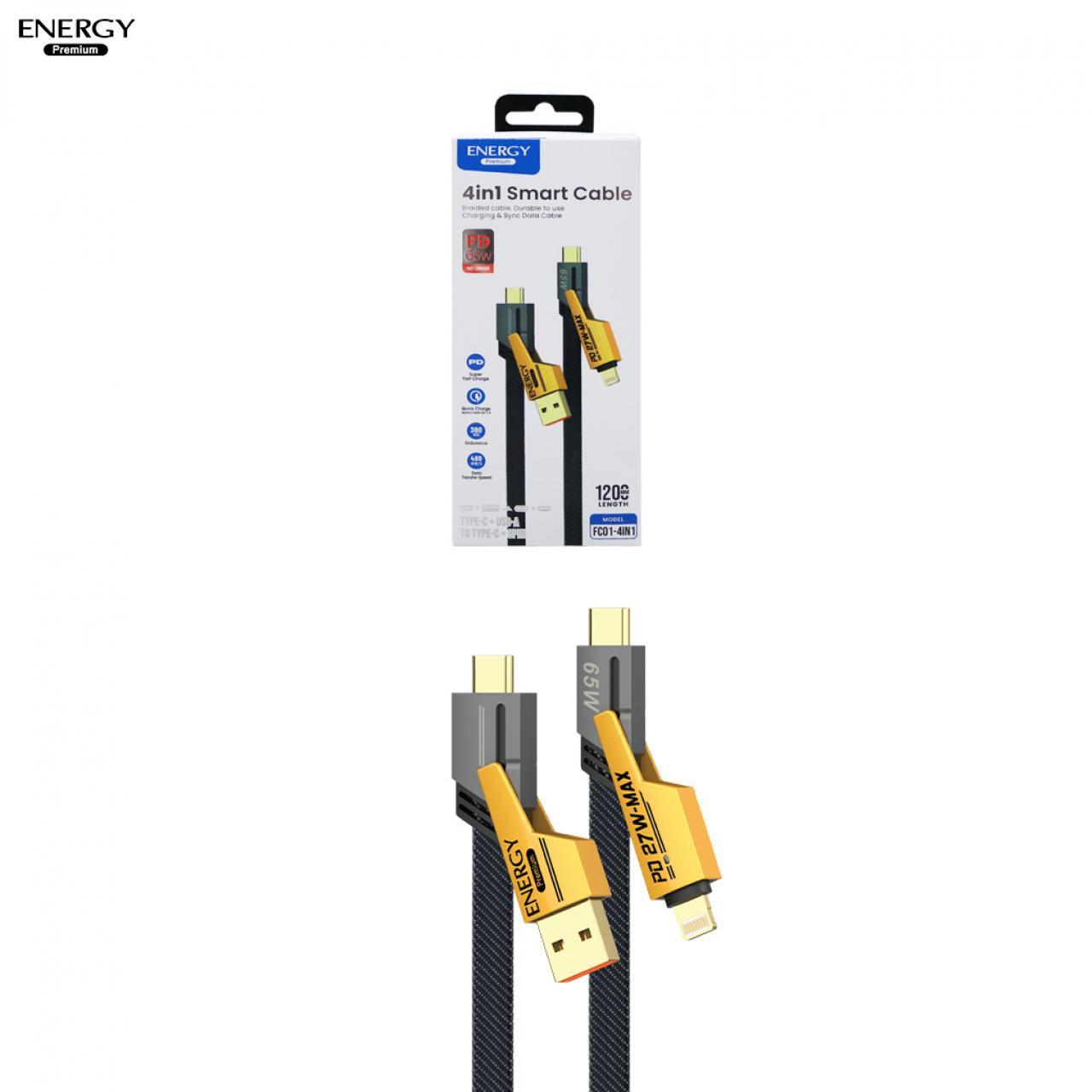 : สายชาร์จ ไนลอนถักเส้นแบน ชาร์จเร็ว 66W (4 in 1) 4 หัว