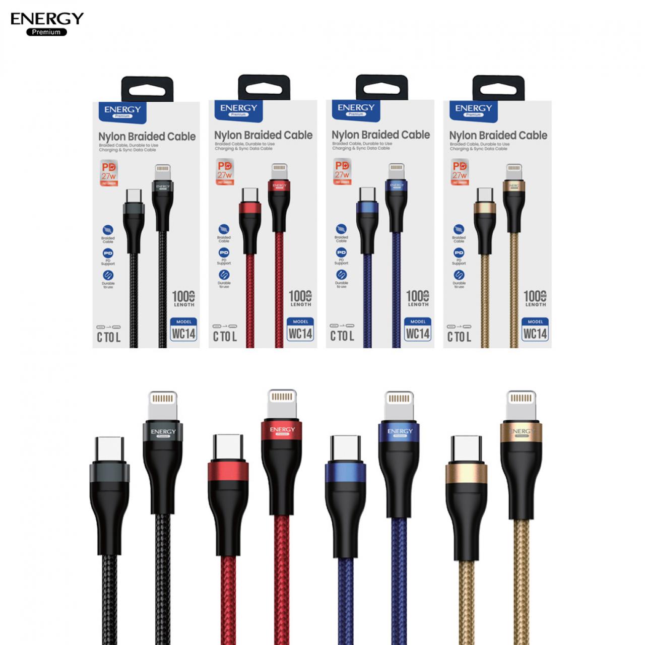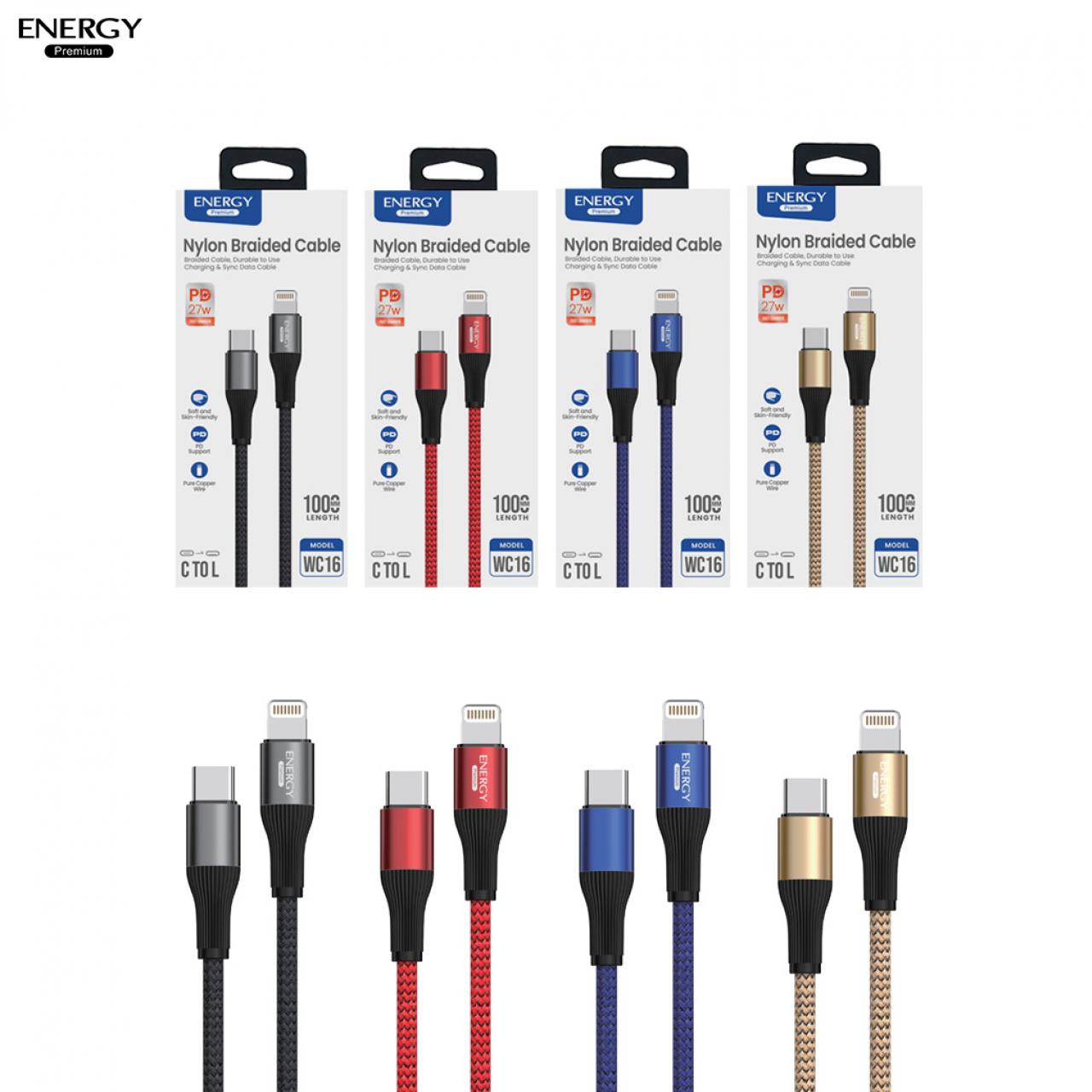 : สายชาร์จ WC18 ชาร์จเร็ว PD27-60W สายไนลอนถักเส้นกลม