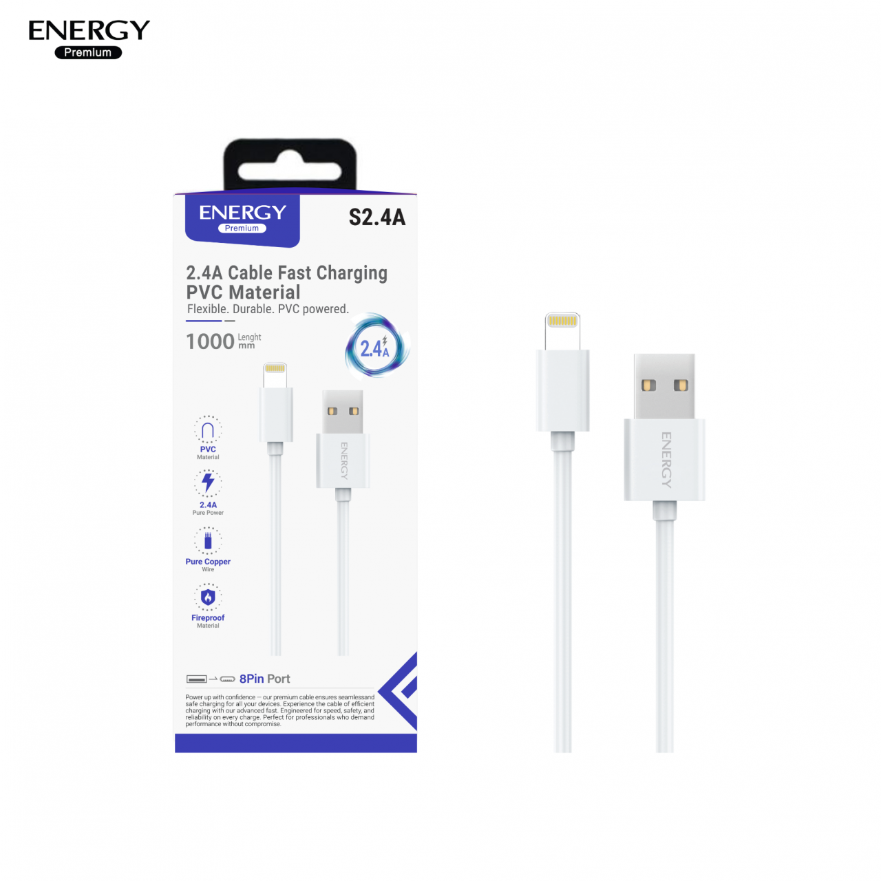 : สายชาร์จ PVC จ่ายไฟ 2.4A ความยาว 2 เมตร