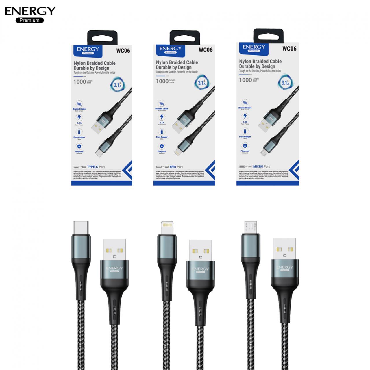 : สายชาร์จ FC01 ชาร์จเร็ว 3.1A สายไนลอนถักเส้นแบน