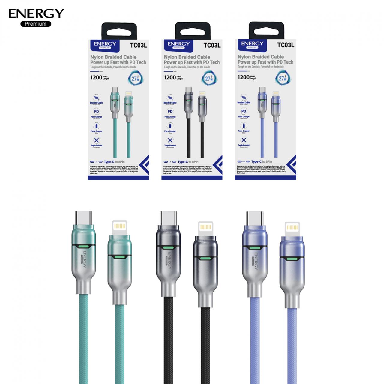 : สายชาร์จ TPE ใส+ไนลอนถักเส้นกลม ชาร์จเร็ว PD 27-60W