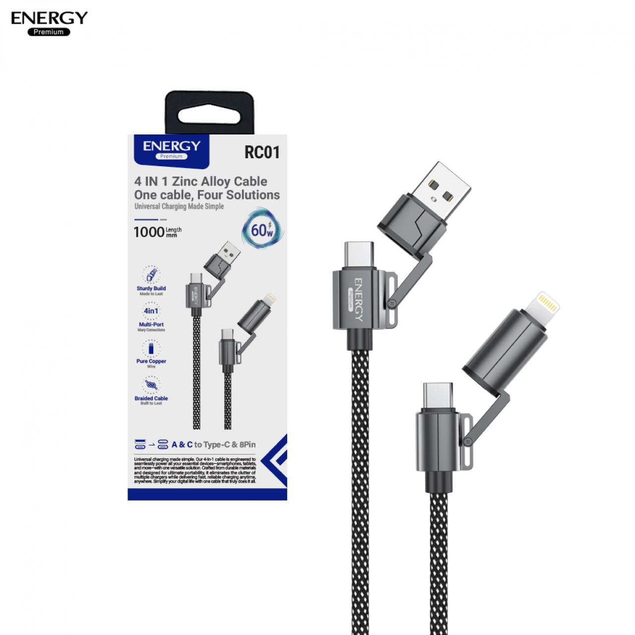 : สายชาร์จ 4IN1 ไนลอนถักเส้นกลม ชาร์จเร็ว 60W