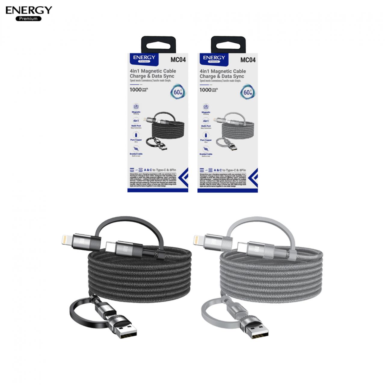 : สายชาร์จแม่เหล็ก 4IN1 Magnetic ไนลอนถักเส้นกลม ชาร์จเร็ว 60W