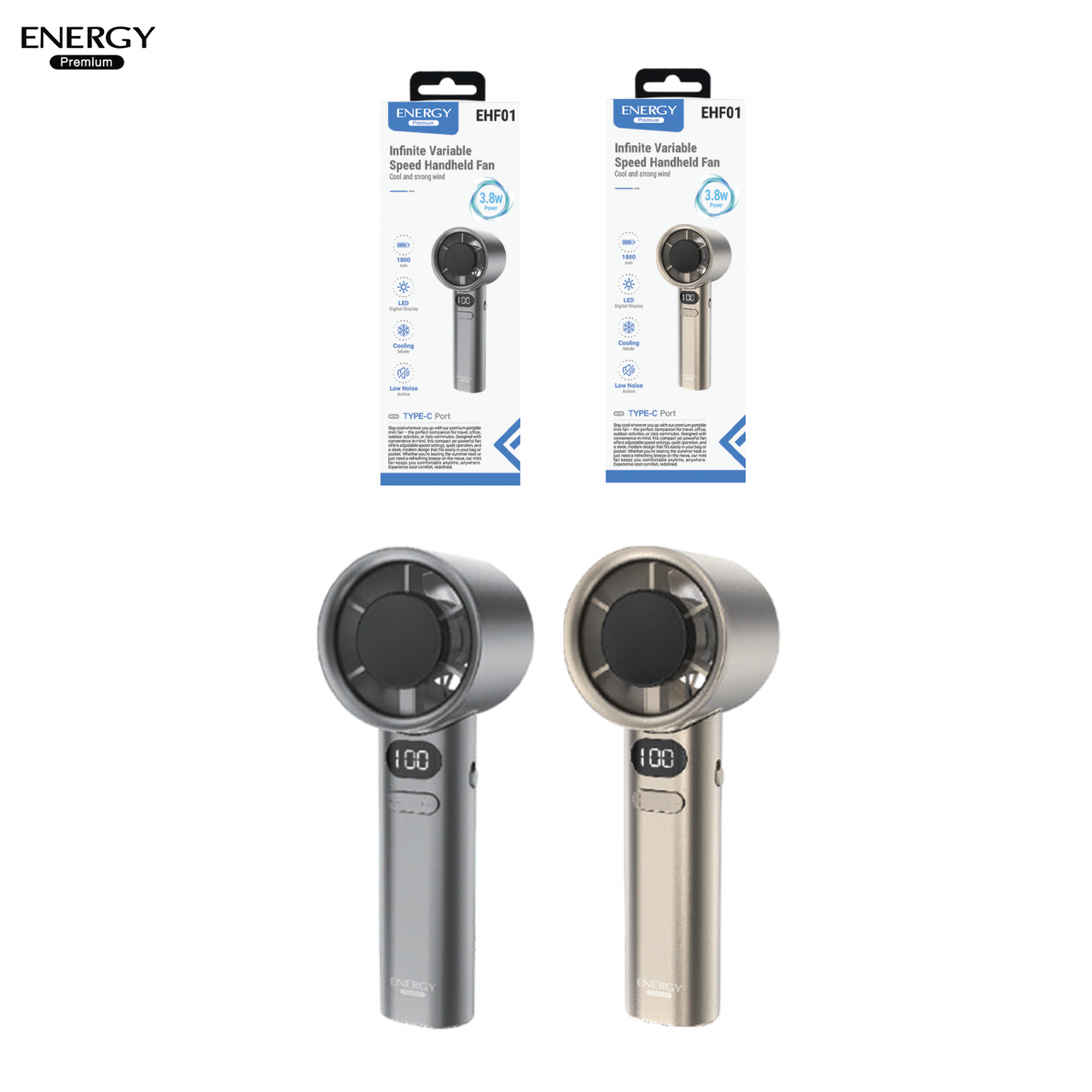 : พัดลมพกพา รุ่น EHF01-Capacity 1800mAh 3.8W หน้าจอดิจิทัล ปรับได้หลายระดับ