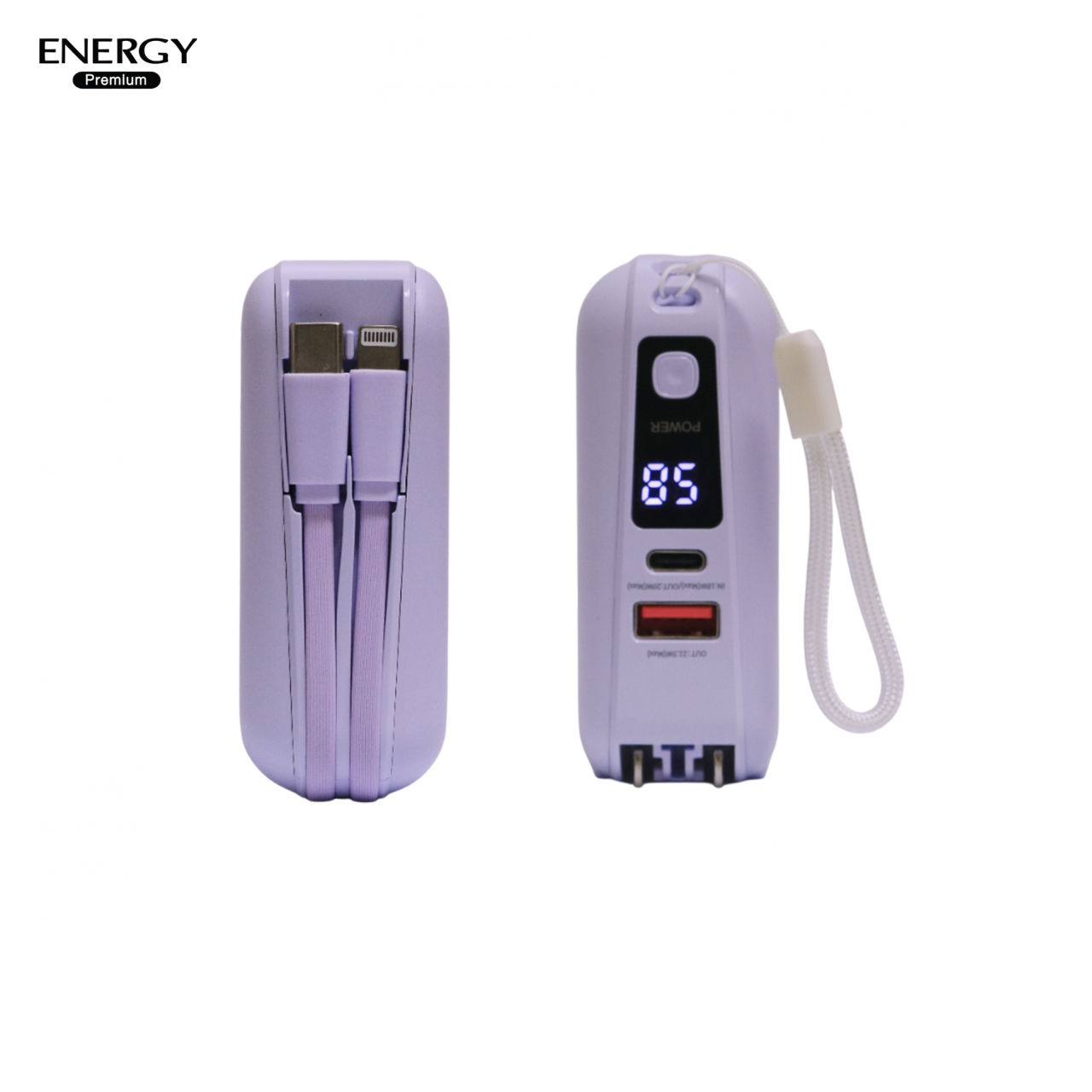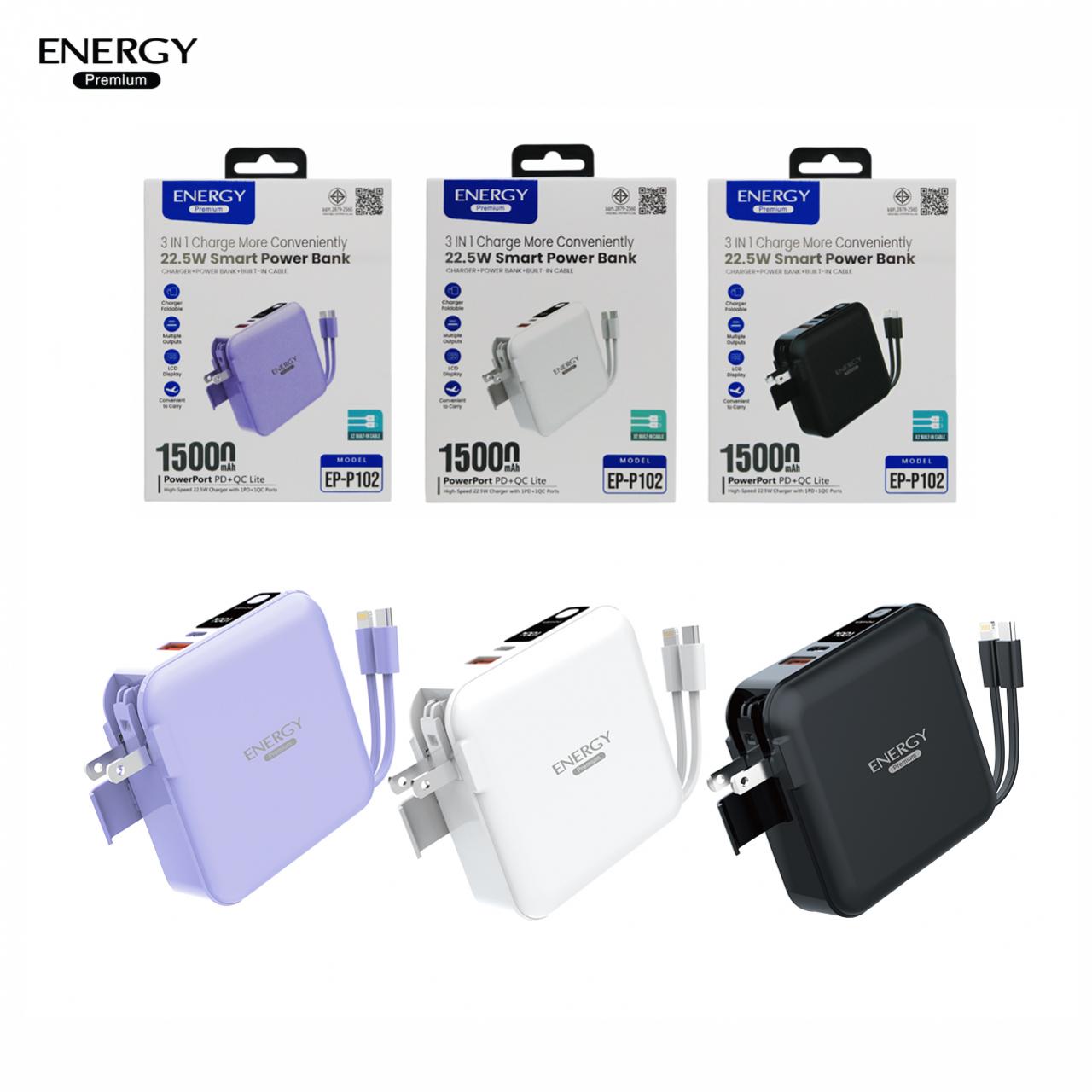 พาวเวอร์แบงค์ ความจุ 15000mAh ชาร์จเร็ว 22.5W 2 สายชาร์จในตัว พร้อมขาปลั๊กพับได้