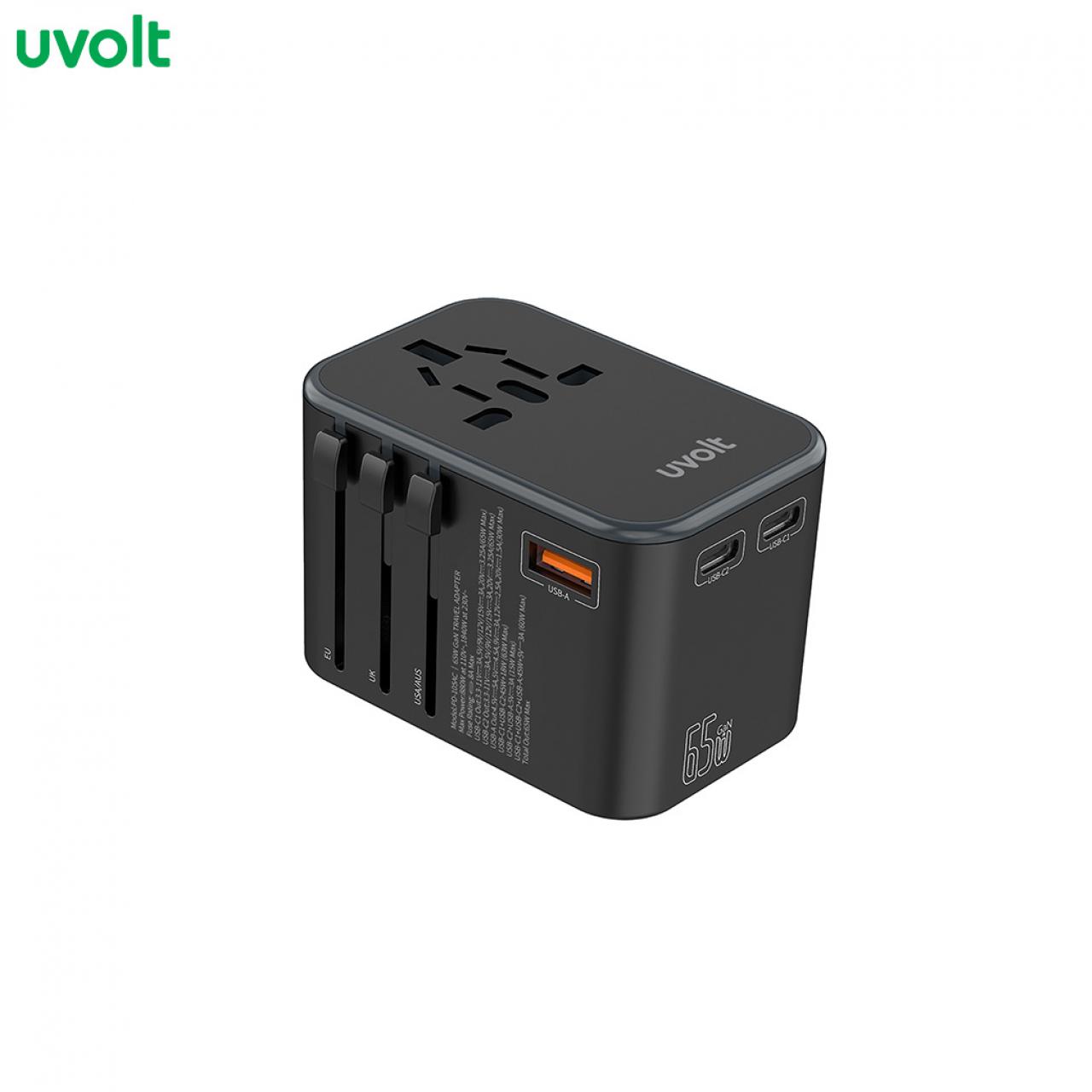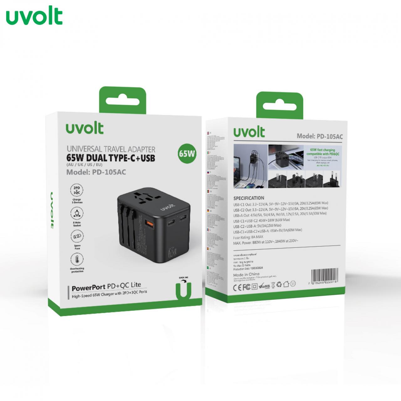 Uvolt Universal Travel Adapter 65W Dual USB+Type C Model:PD-105AC