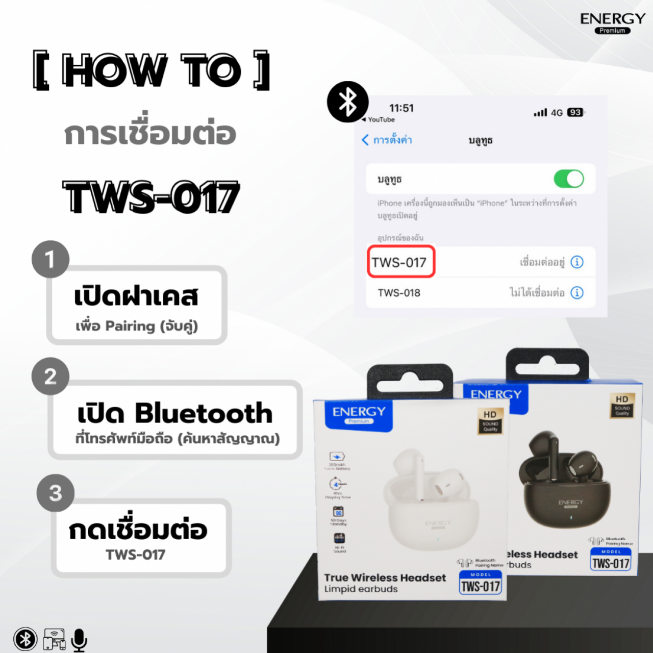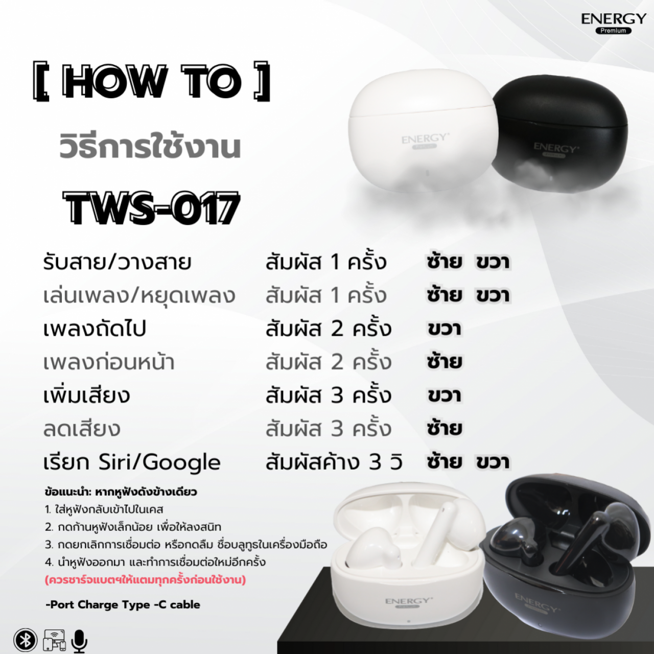 Model:TWS-017 Ver 5.3 หูฟังแบบ Earbud
