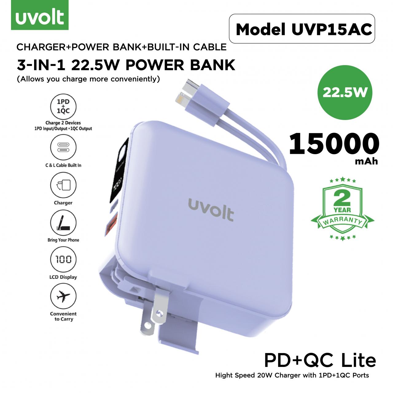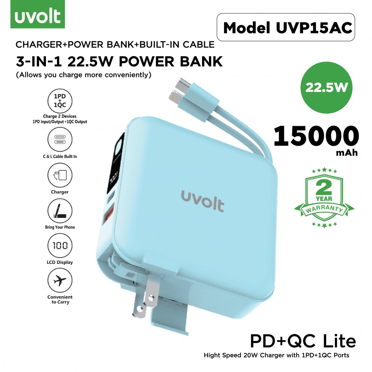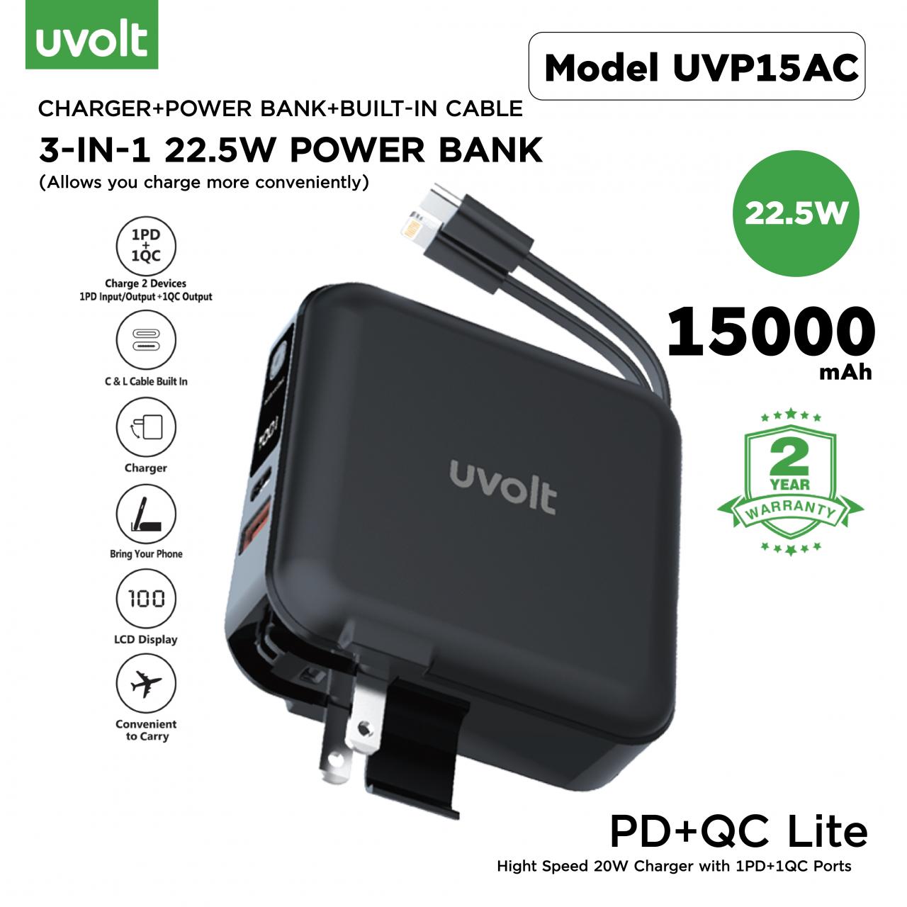 Uvolt Power Bank Port PD+QC Lite High-Speed 22.5W Charger with 1PD+1QC Ports