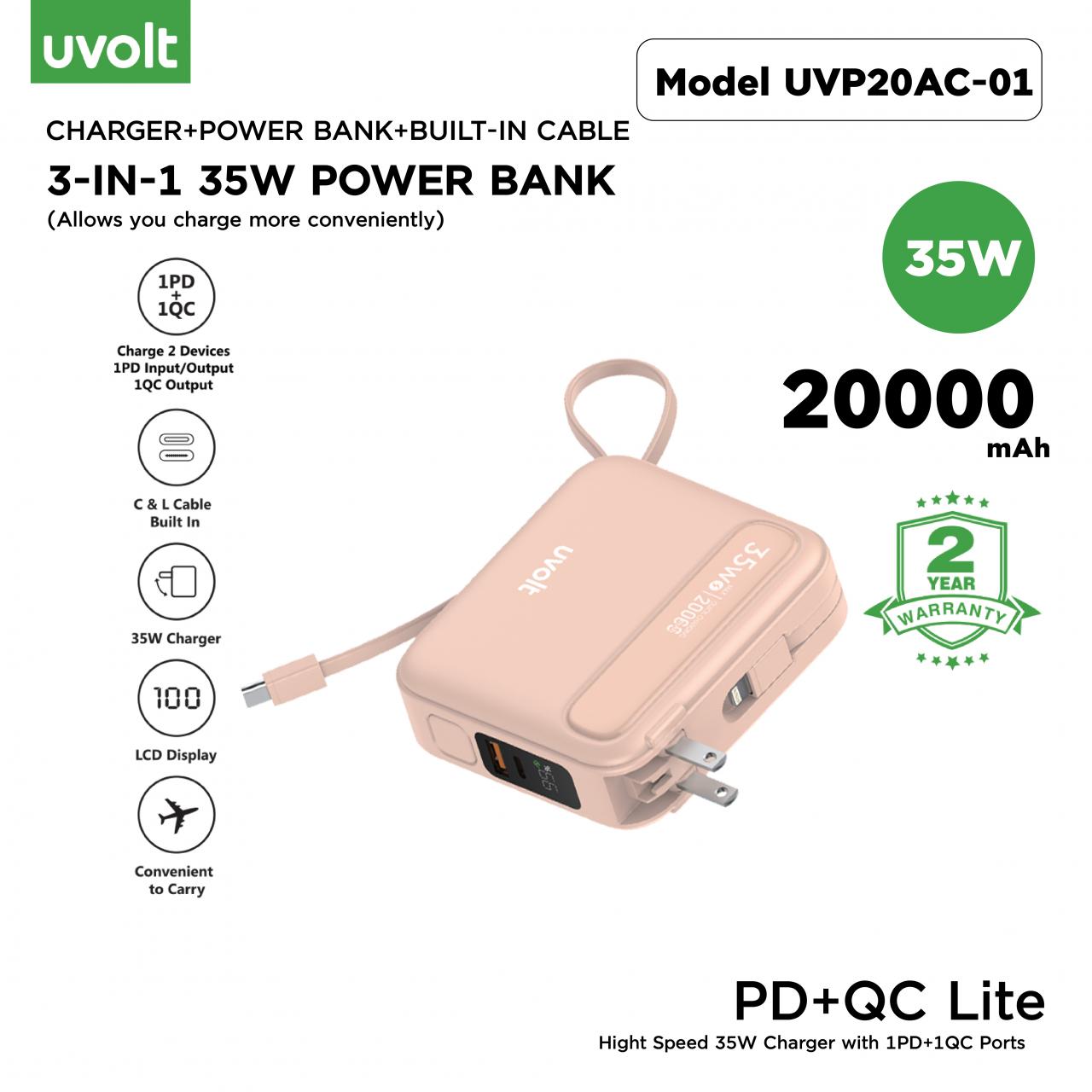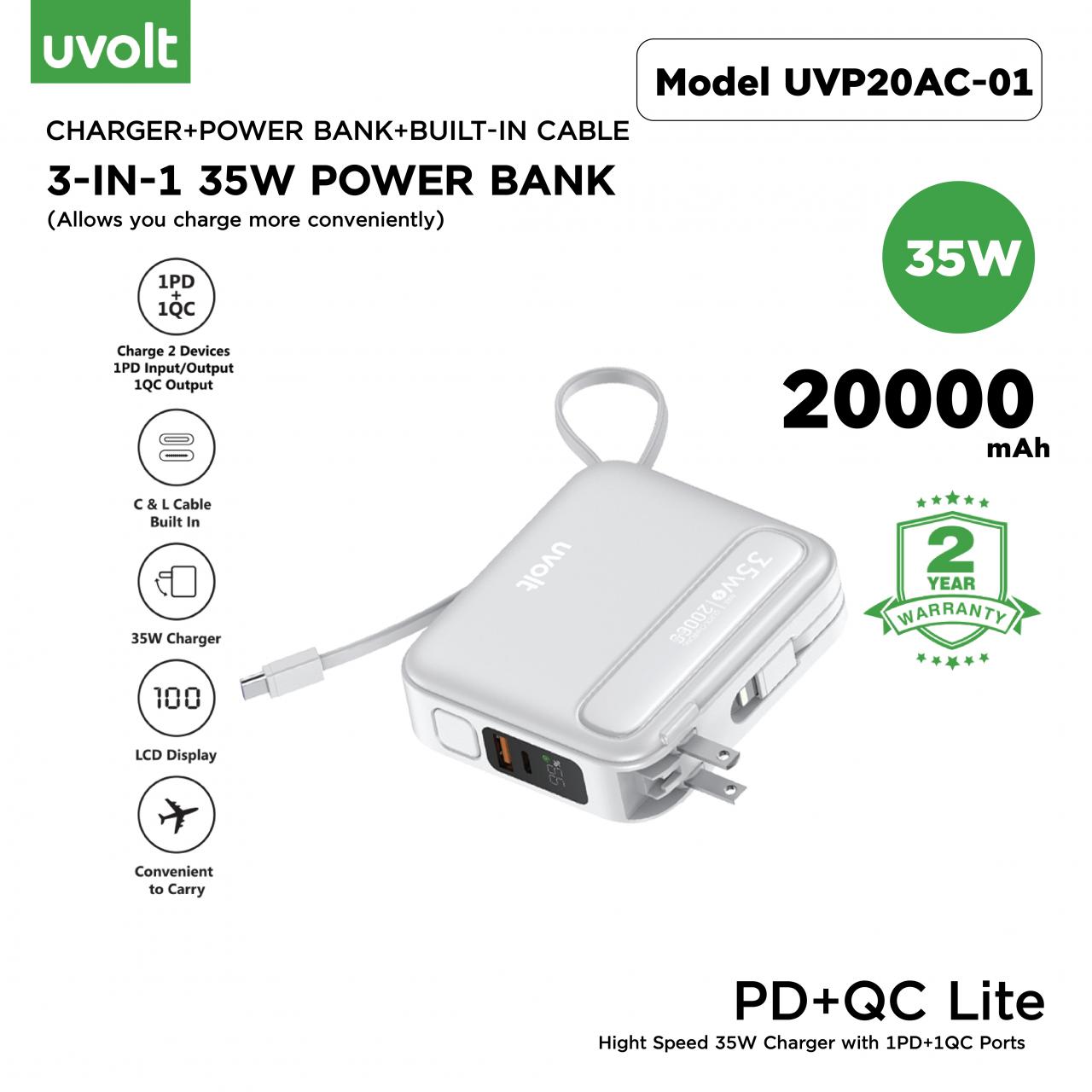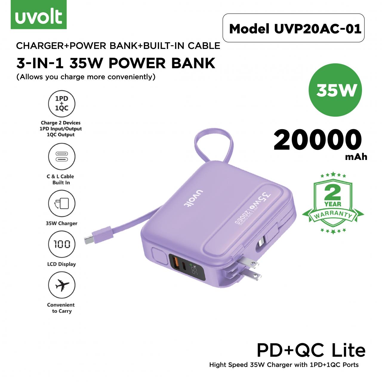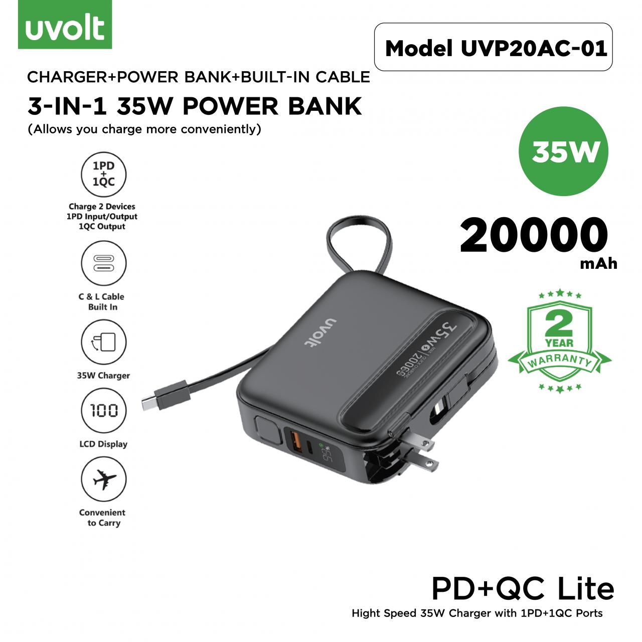 Uvolt Power Bank PD+QC Lite Hight Speed 35W Charger with 1PD+1QC Ports