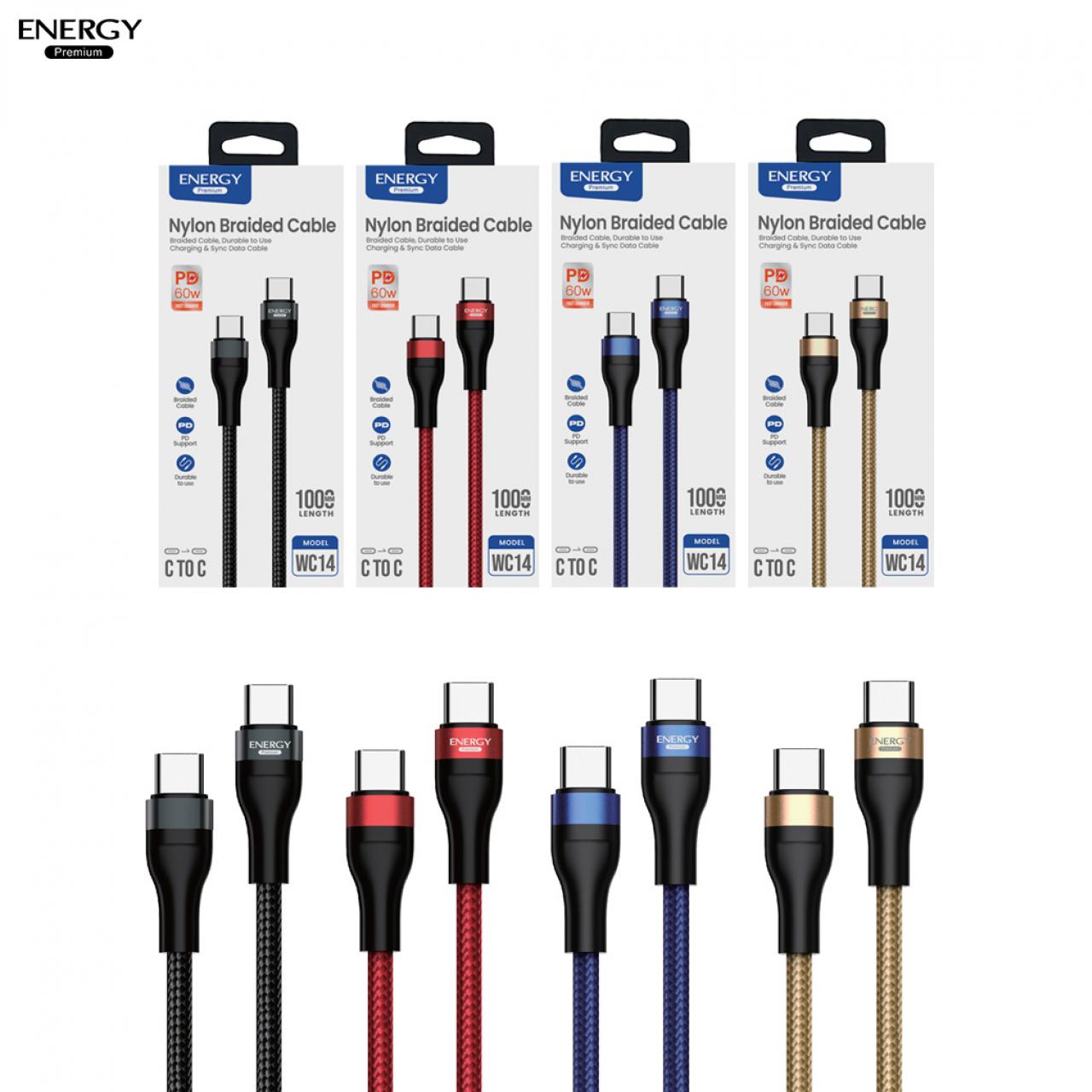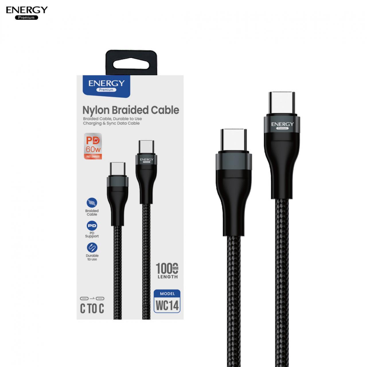 Model : WC14-TC Output : 60W Fast Charge Data Transmission : 2.0+Temper-Proof Processing Line Length : 1000mm Material : Nylon Internal Resistance :<0.65(Single Core)