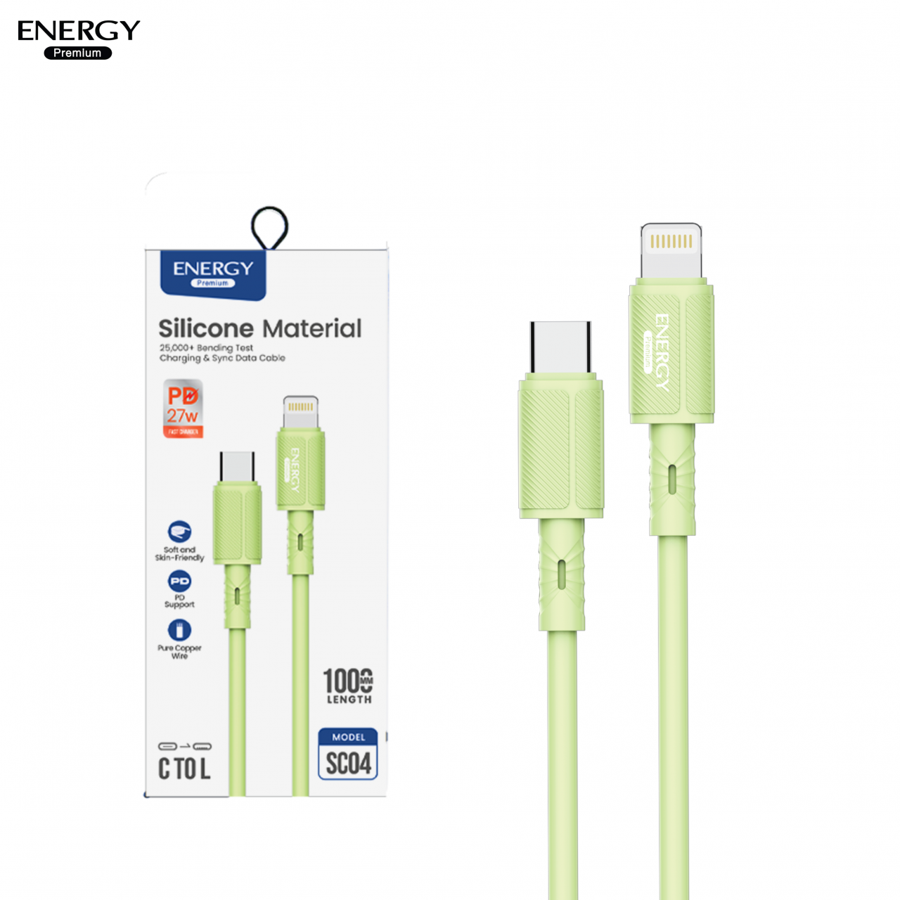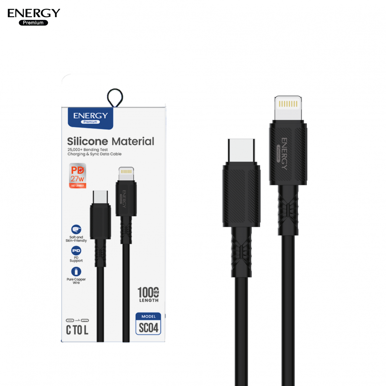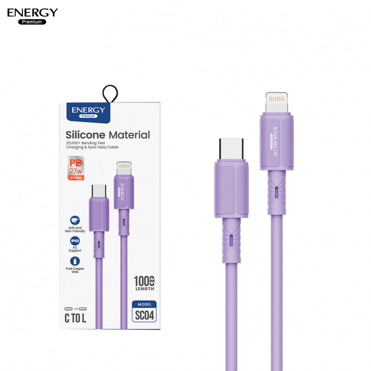 สายชาร์จ ซิลิโคนนิ่มพิเศษ ชาร์จเร็ว PD27-60W