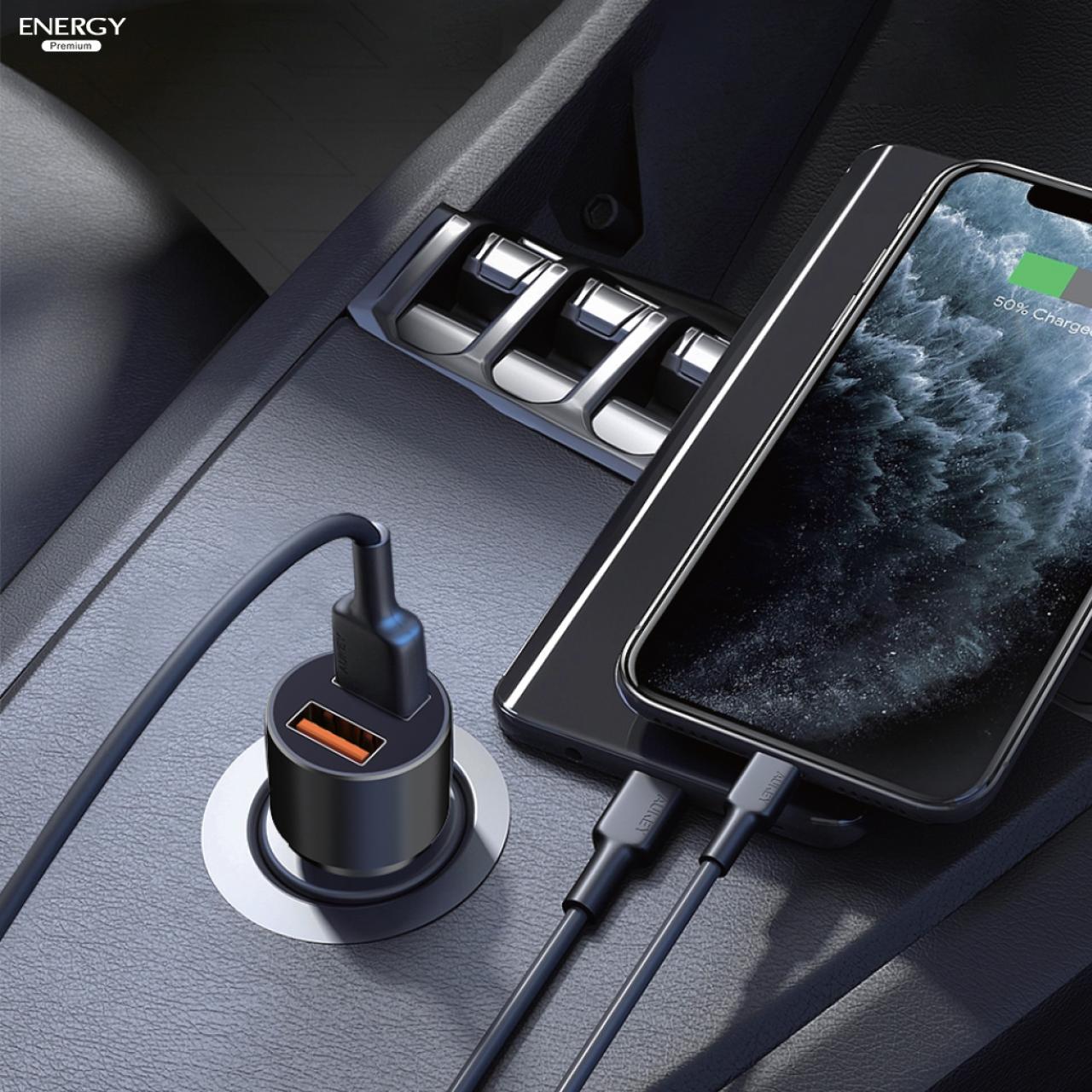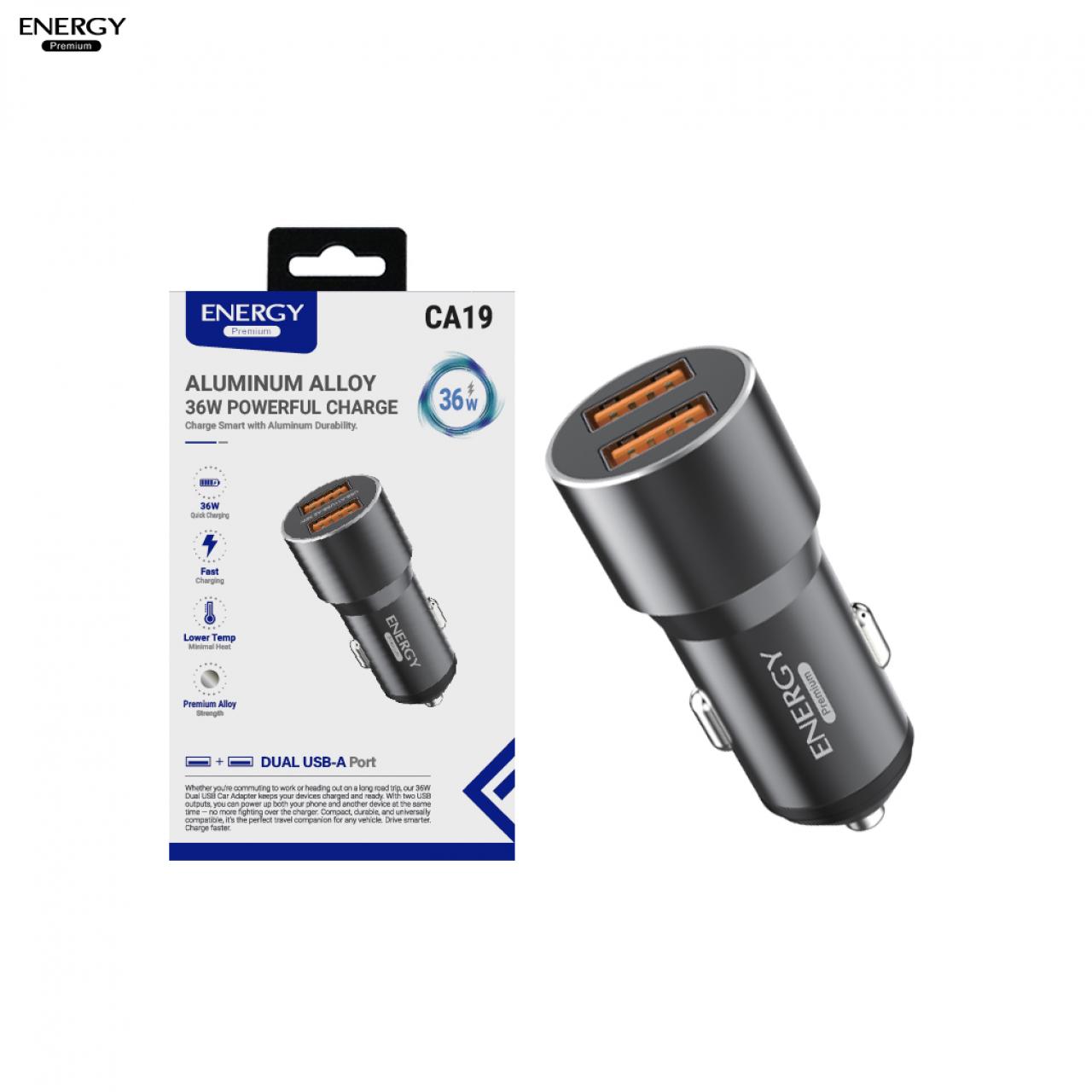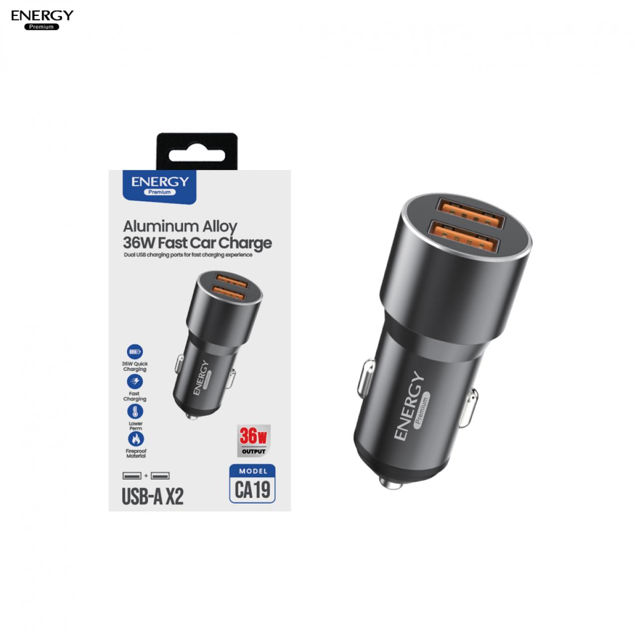 - Ultra-fast car charger with 2 USB ports (Quick Charge 3.1A).
