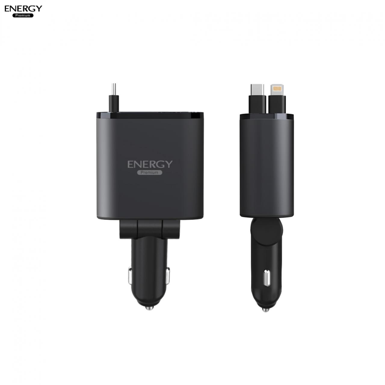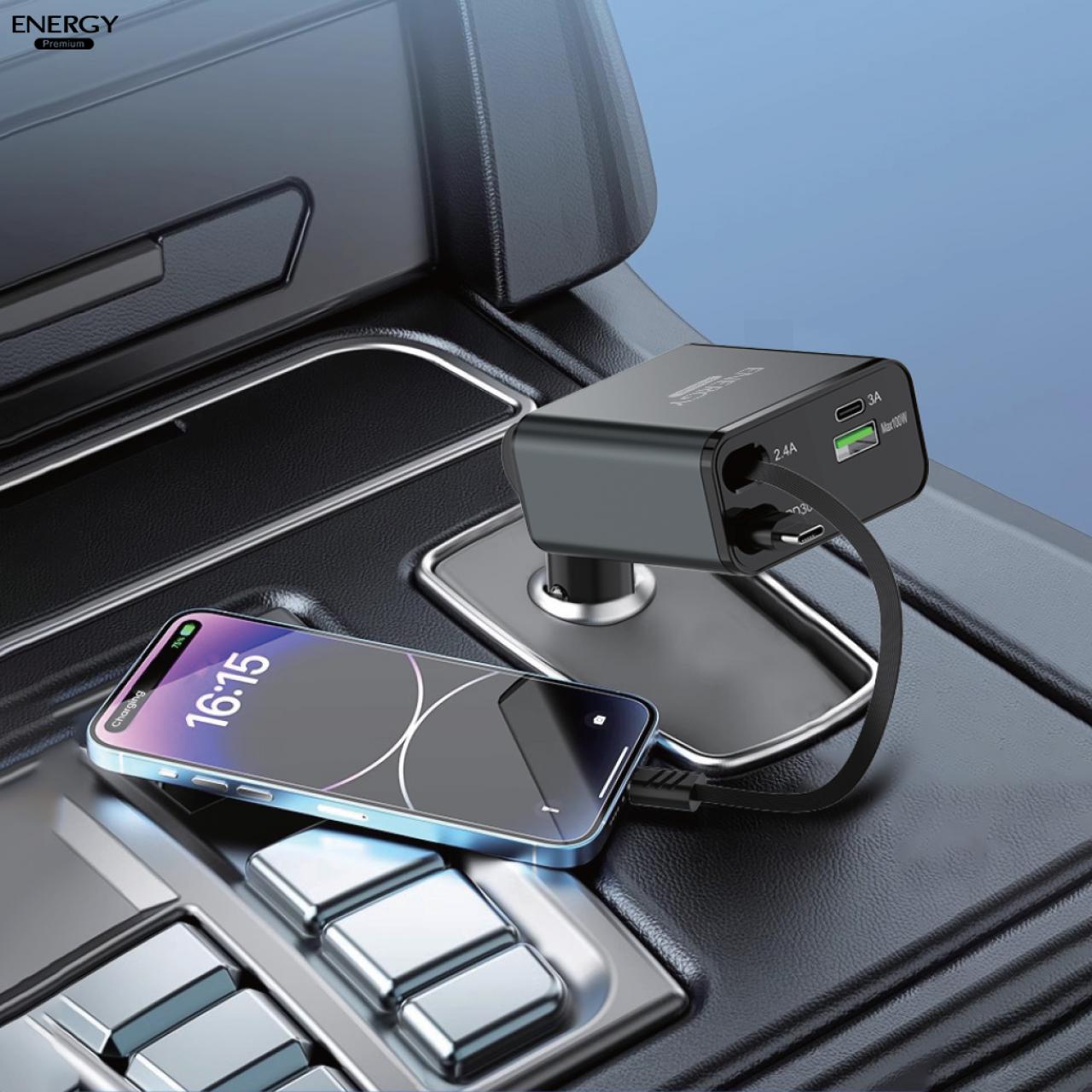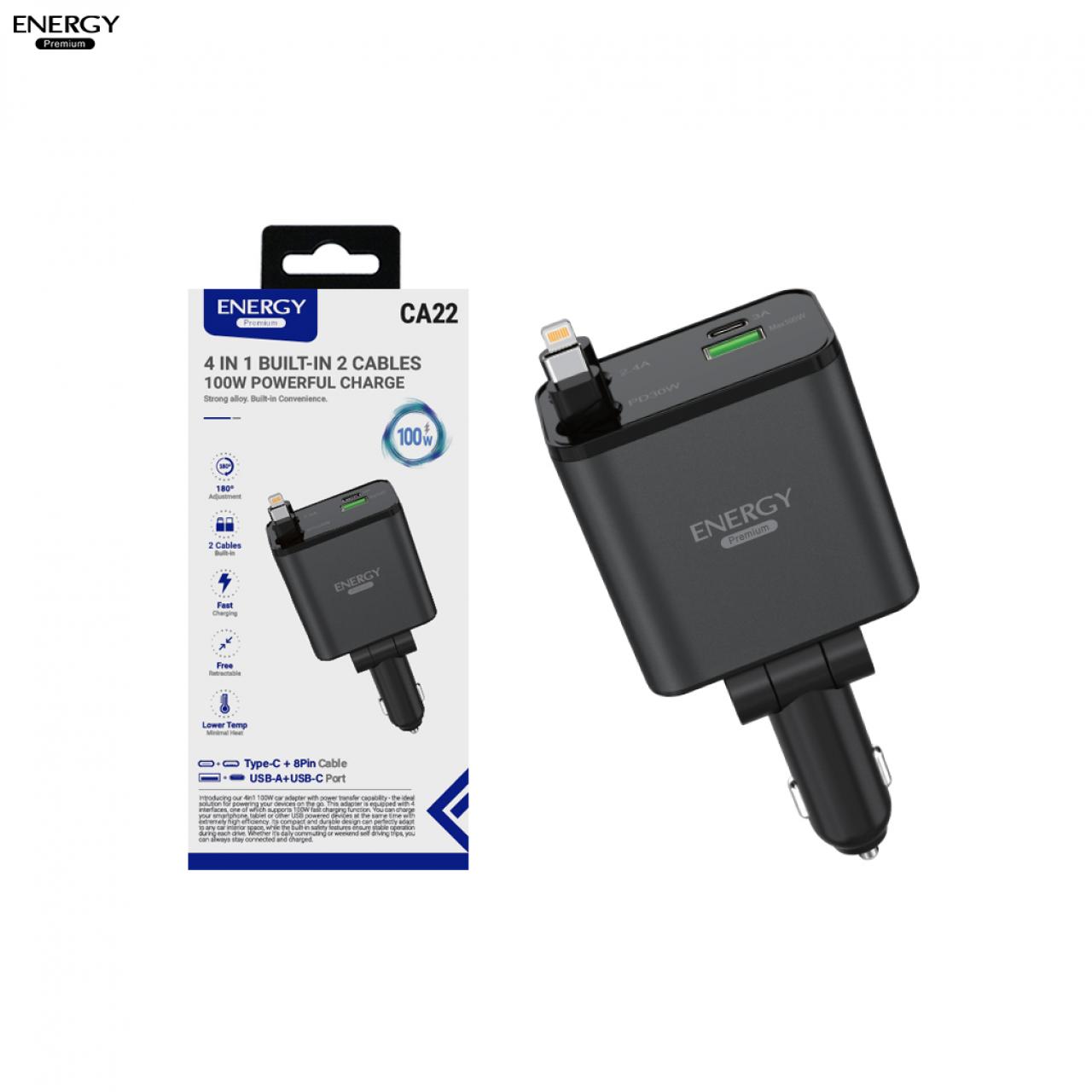 อะแดปเตอร์ สำหรับรถยนต์ CA22 ชาร์จเร็ว 100W 2 พอร์ต + 2 สายชาร์จในตัว