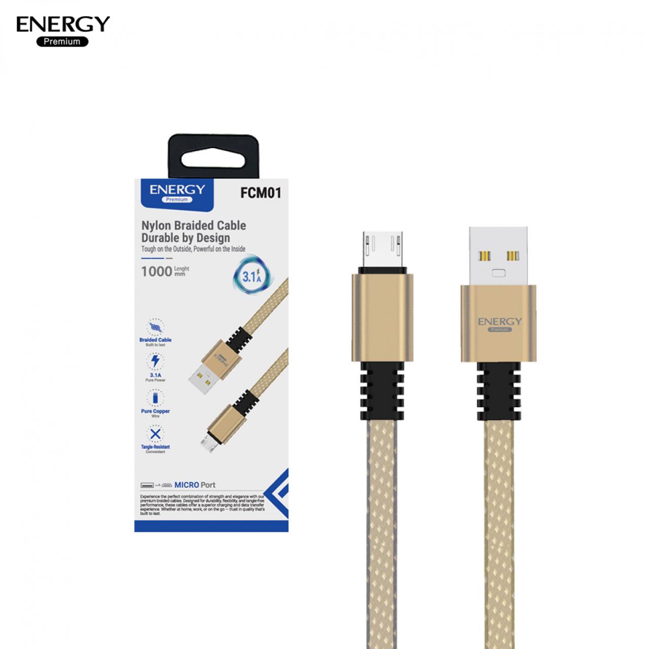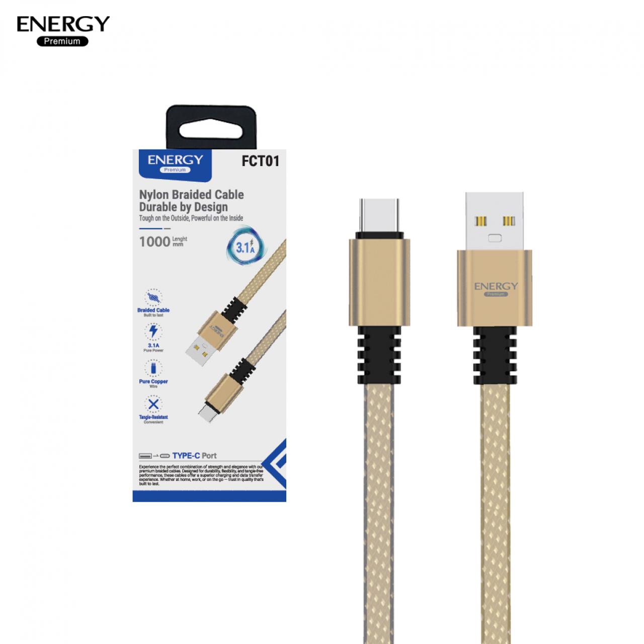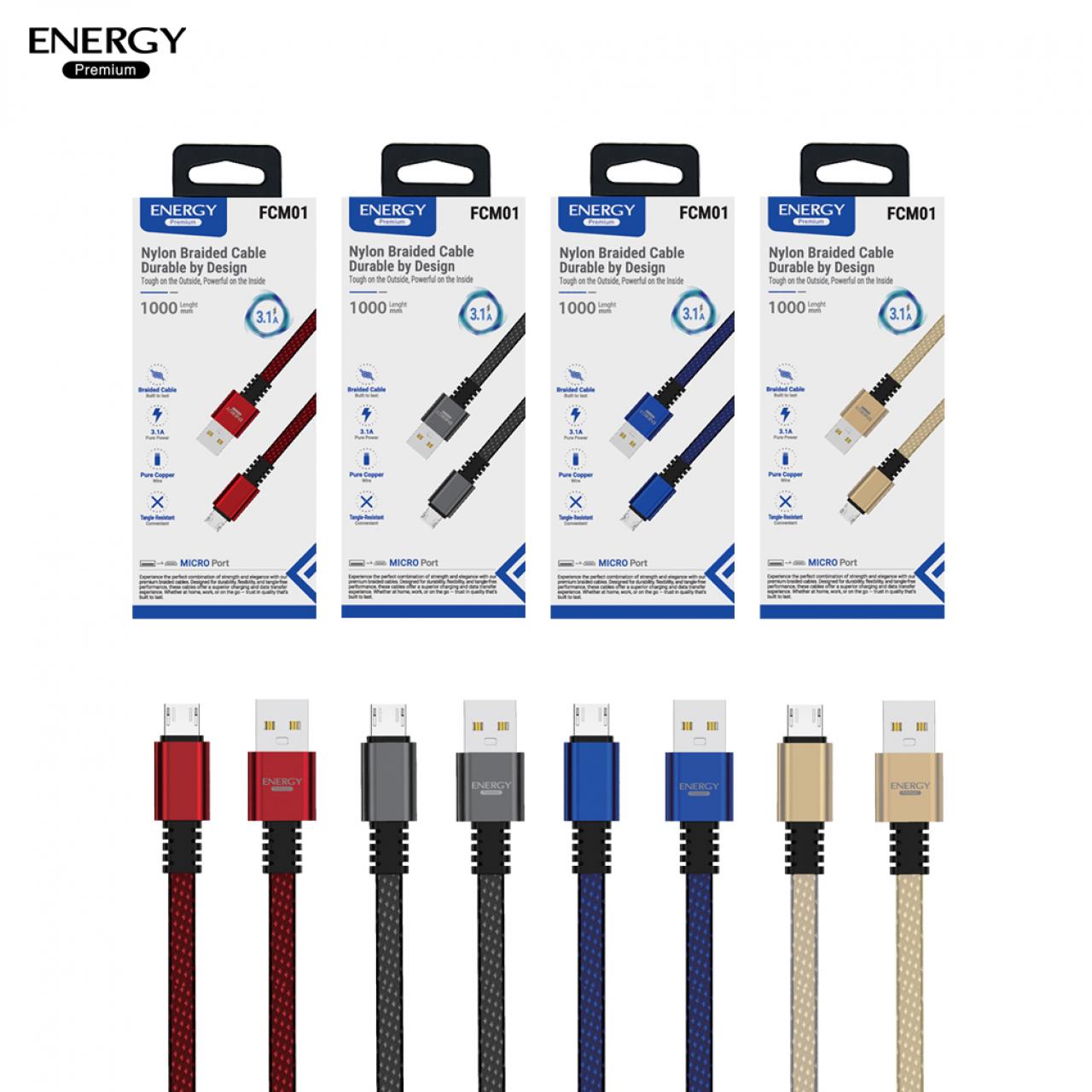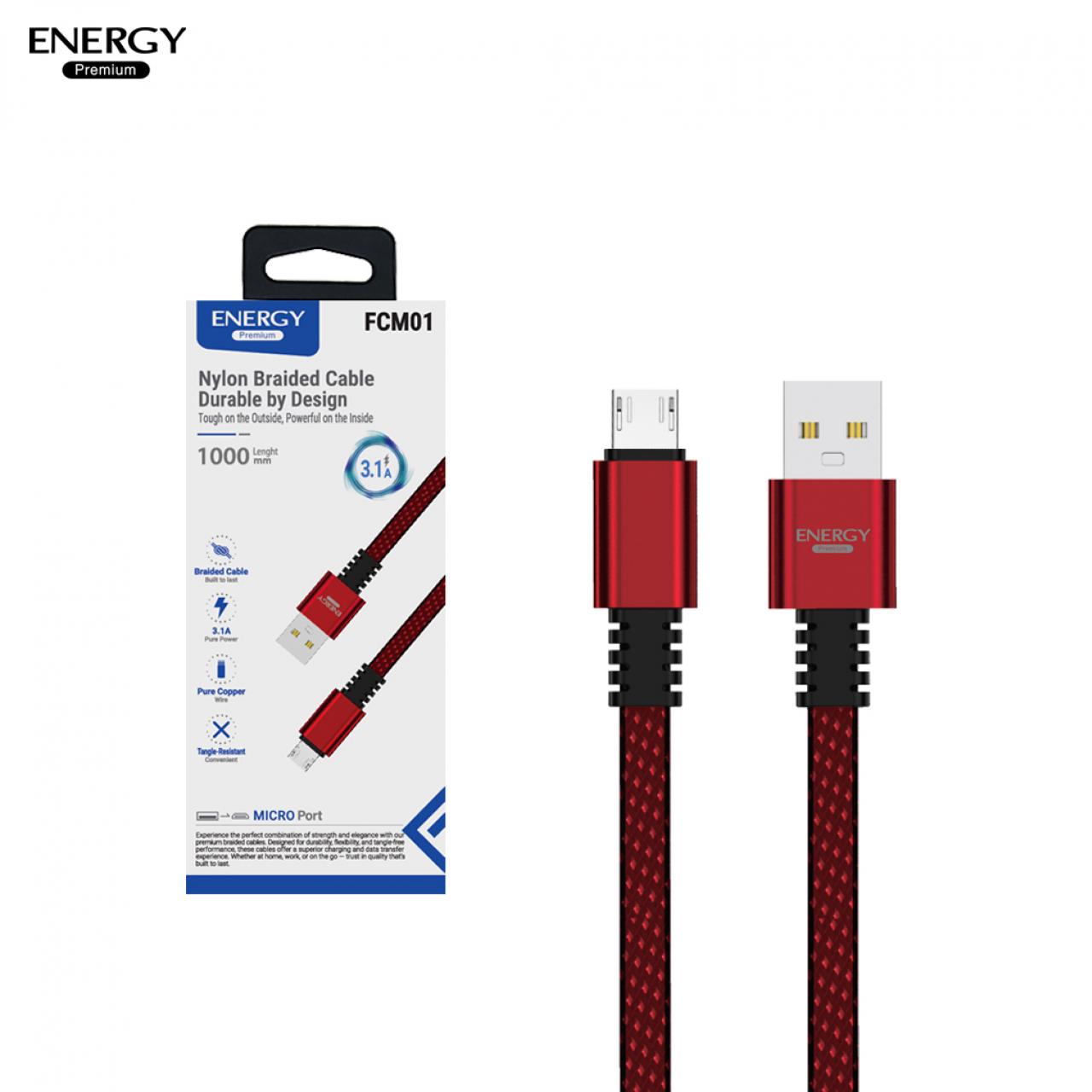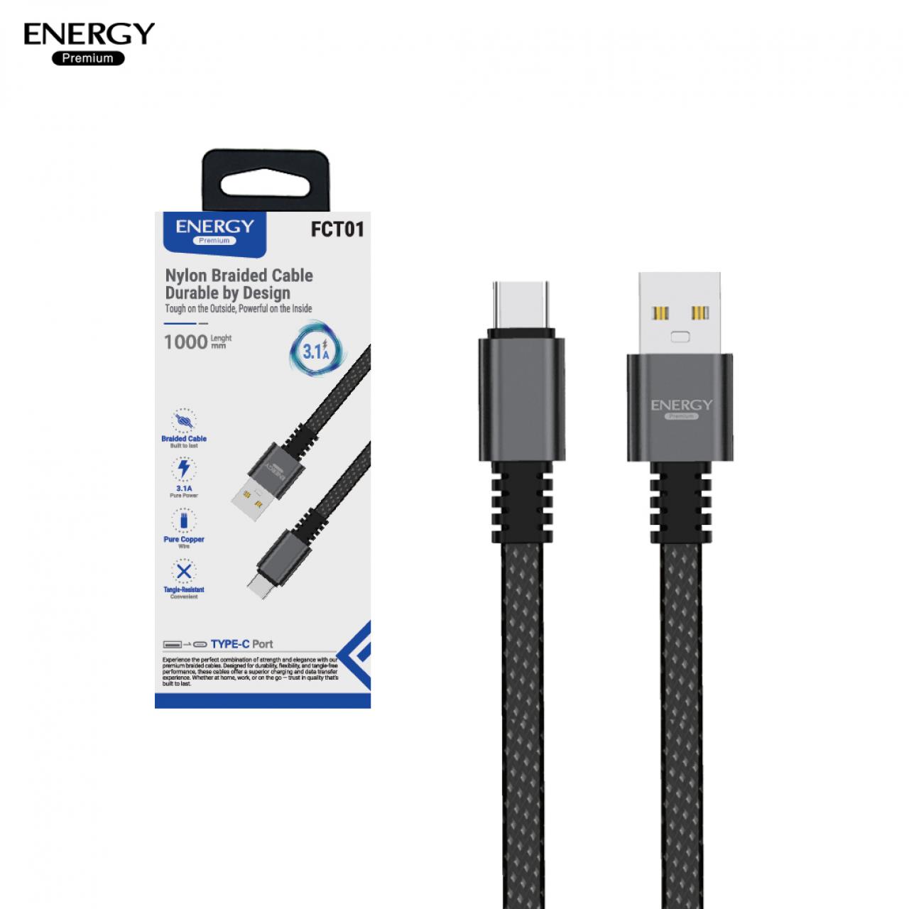 สายชาร์จ FC01 ชาร์จเร็ว 3.1A สายไนลอนถักเส้นแบน