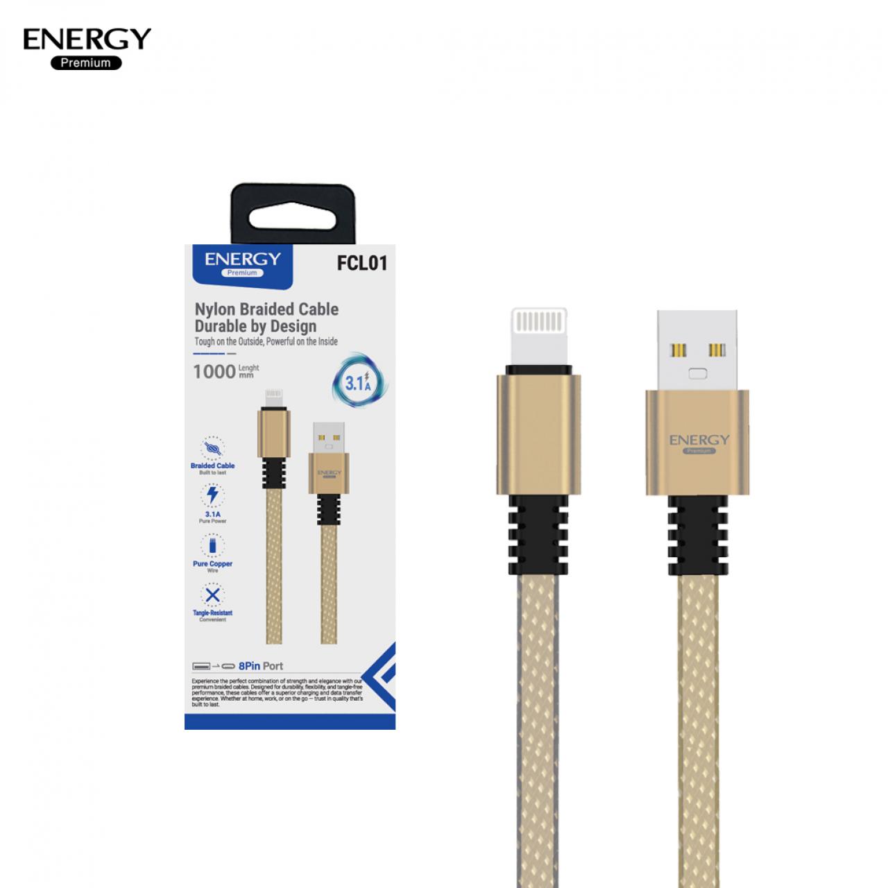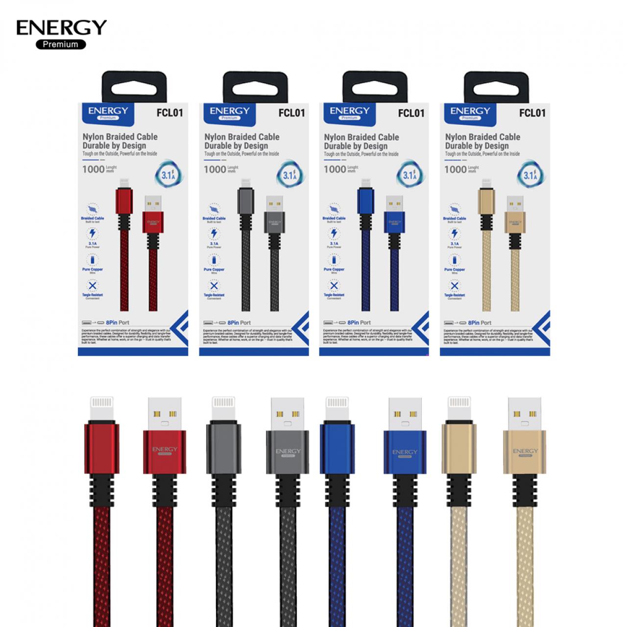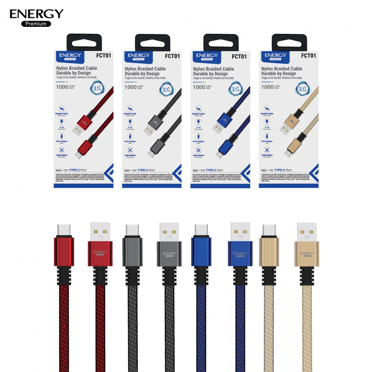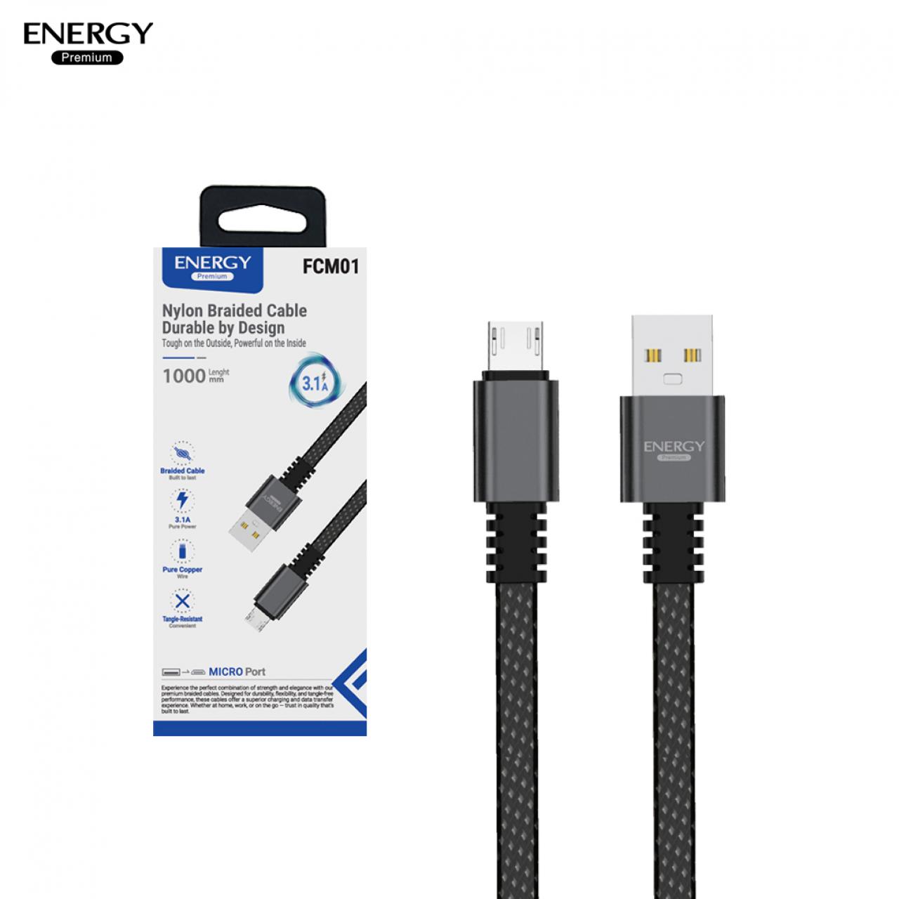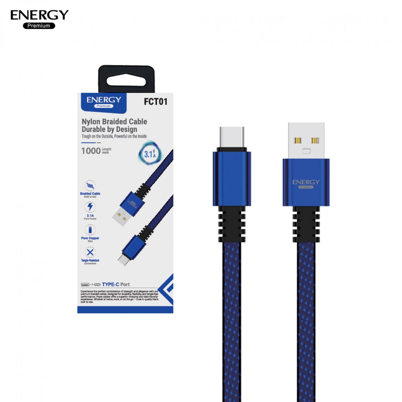 สายชาร์จ FC01 ชาร์จเร็ว 3.1A สายไนลอนถักเส้นแบน