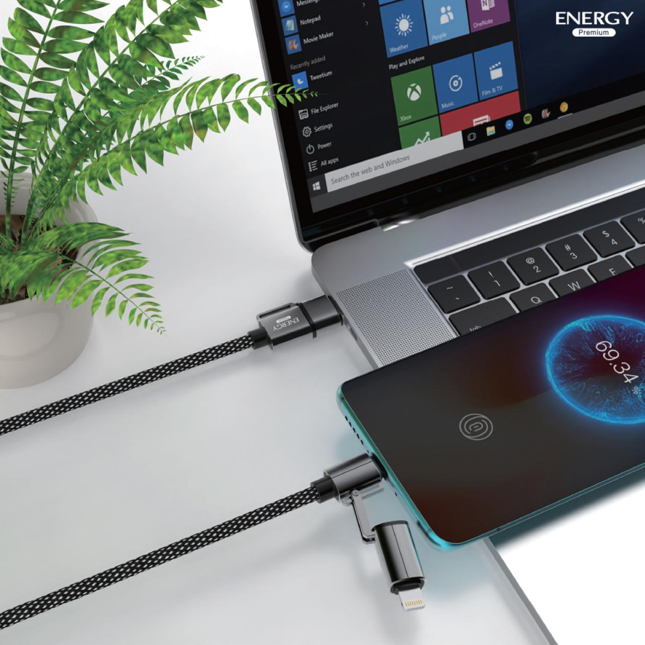 สายชาร์จ 4IN1 ไนลอนถักเส้นกลม ชาร์จเร็ว 60W