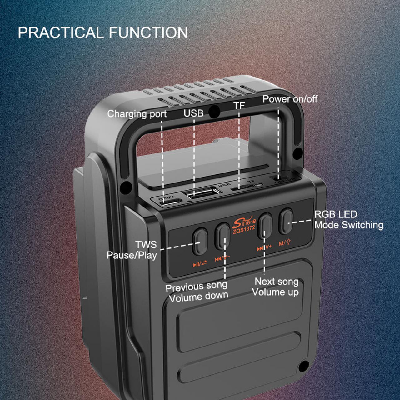 ลำโพง 5W ขนาด 10*14*8CM พร้อมไมค์โครโฟน