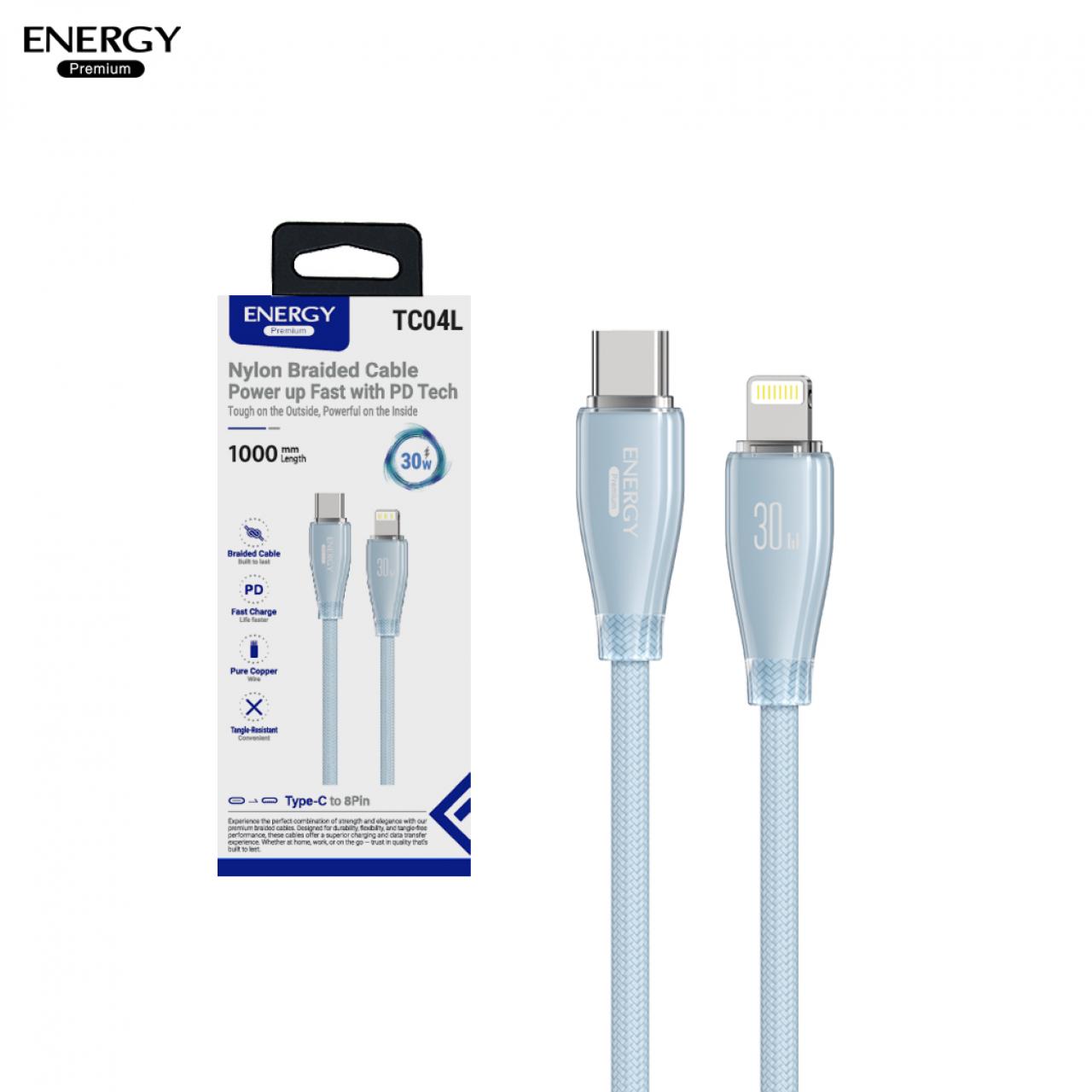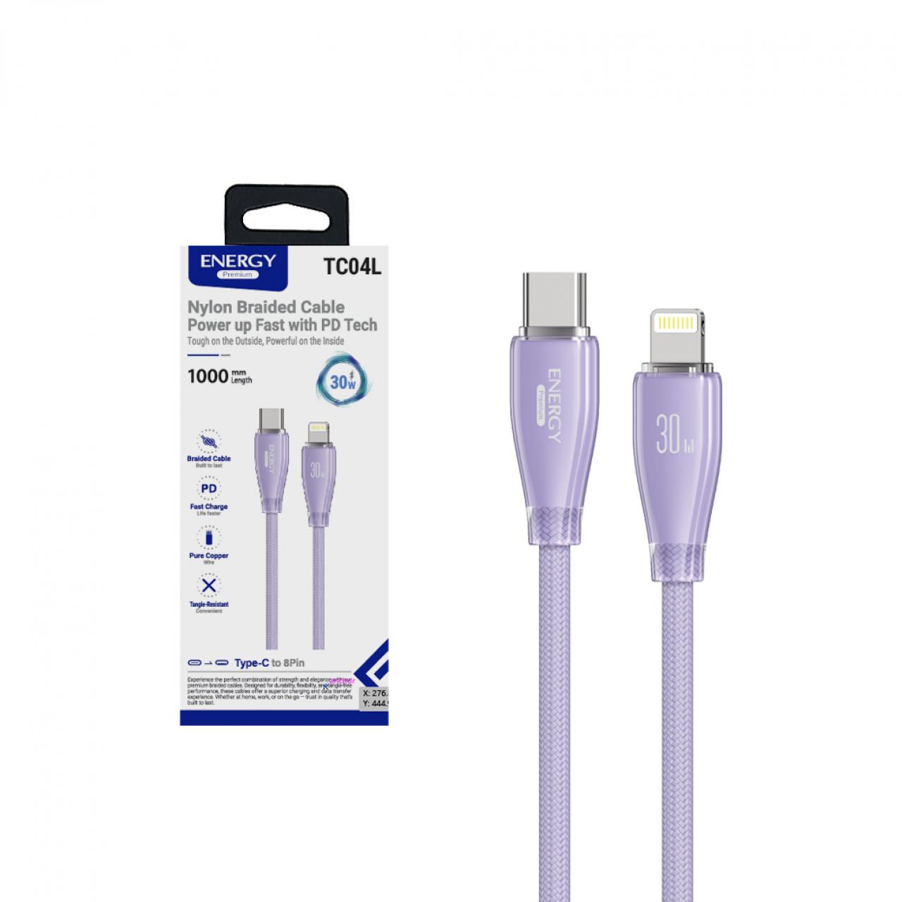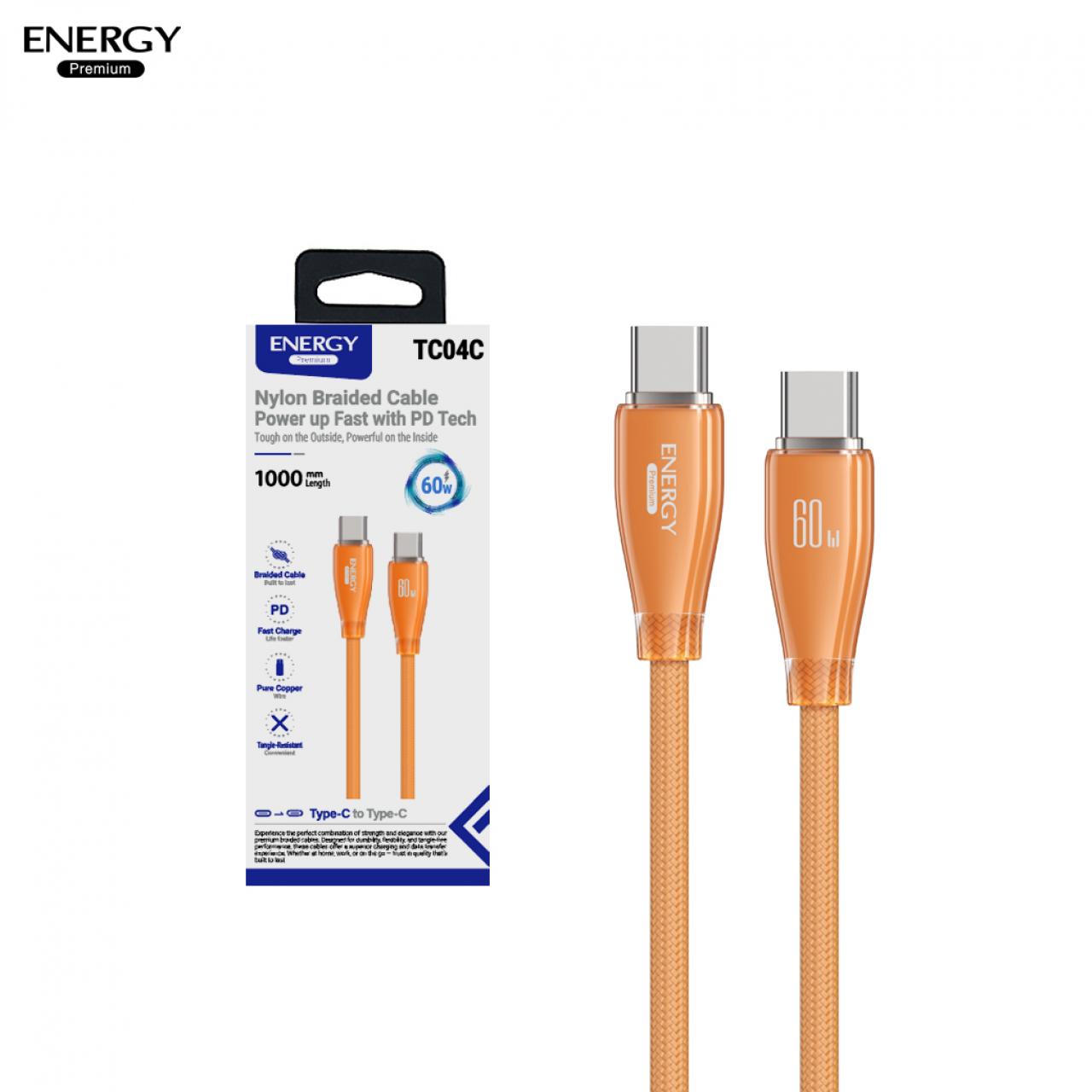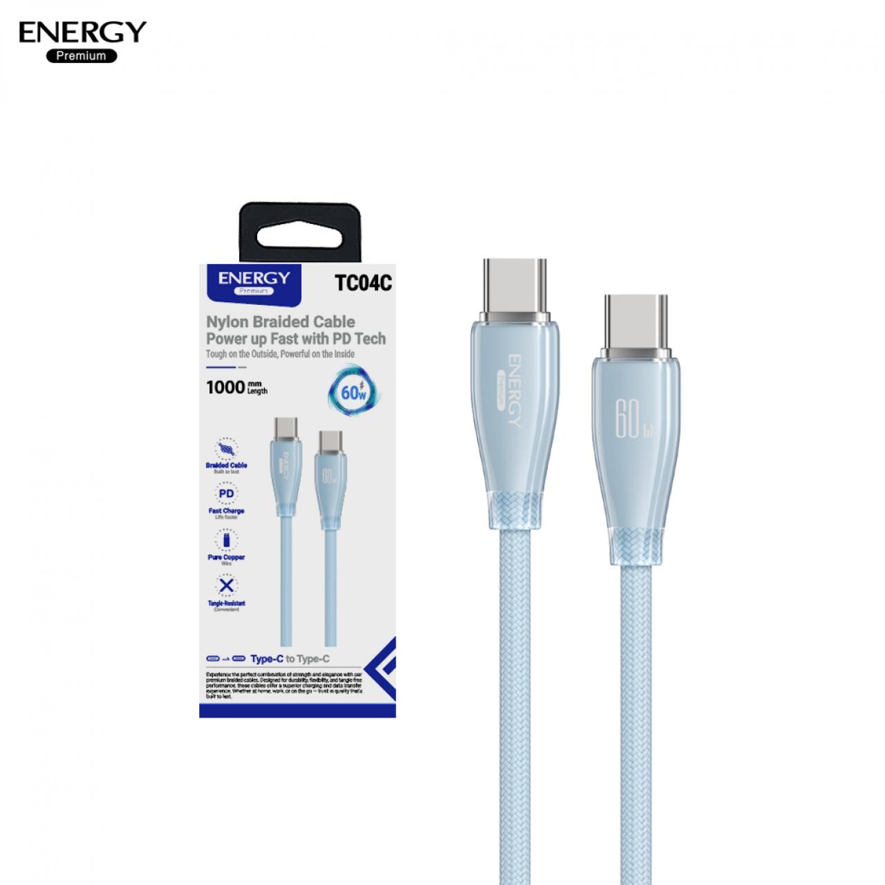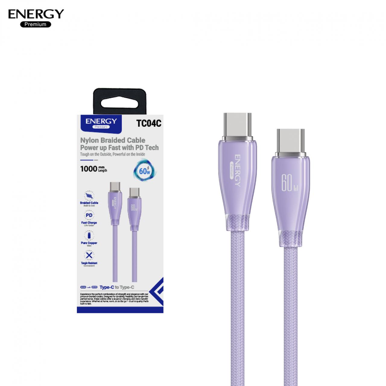 สายชาร์จ TPE ใส+ไนลอนถักเส้นกลม ชาร์จเร็ว PD60W (C to C)