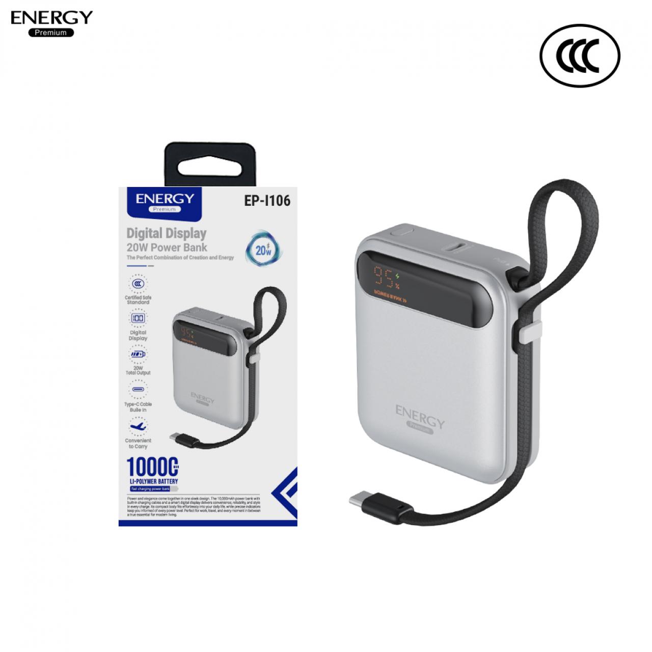 พาวเวอร์แบงค์ ความจุ 10000mAh ชาร์จเร็ว 20W สายชาร์จในตัว