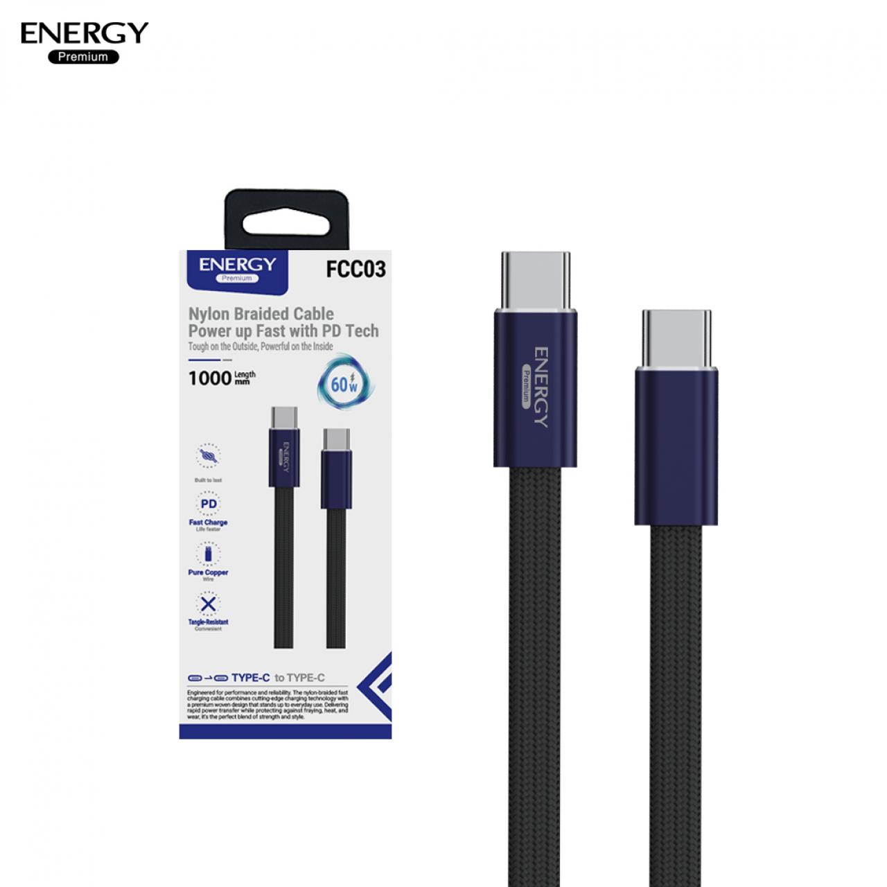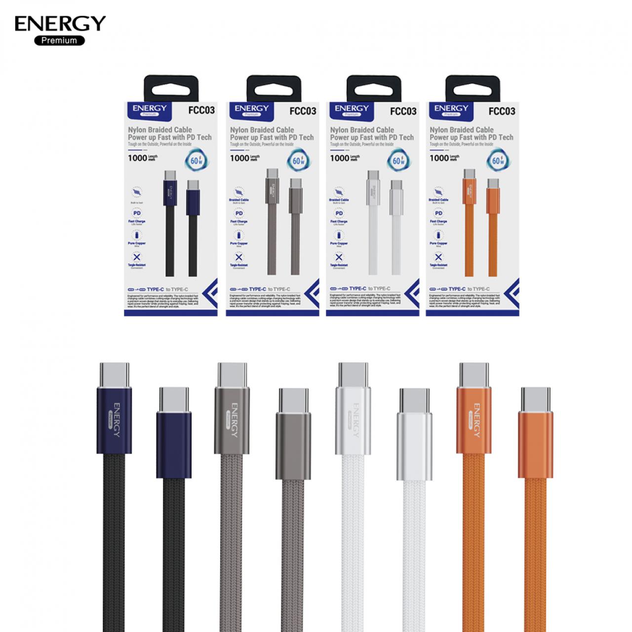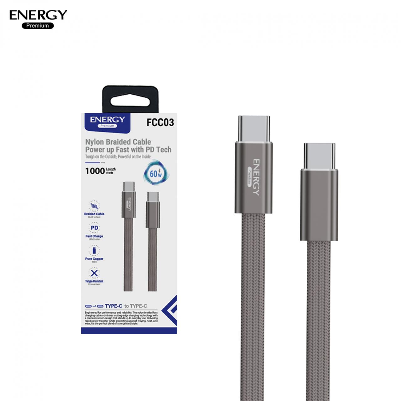 สายชาร์จ FC03 ชาร์จเร็ว PD30-60W สายไนลอนถักเส้นแบน