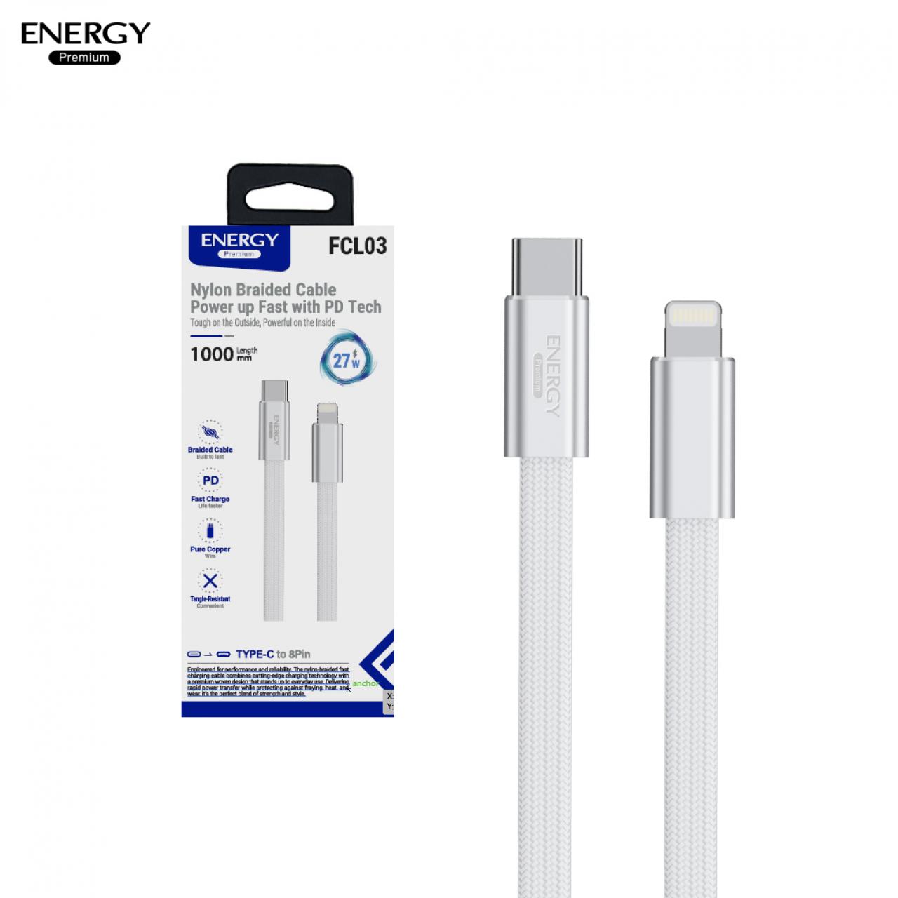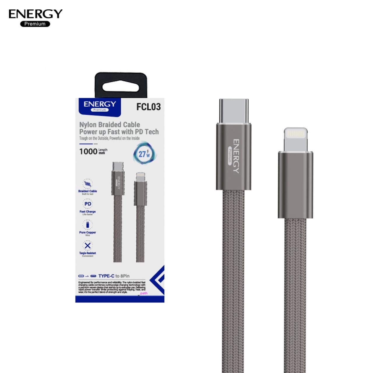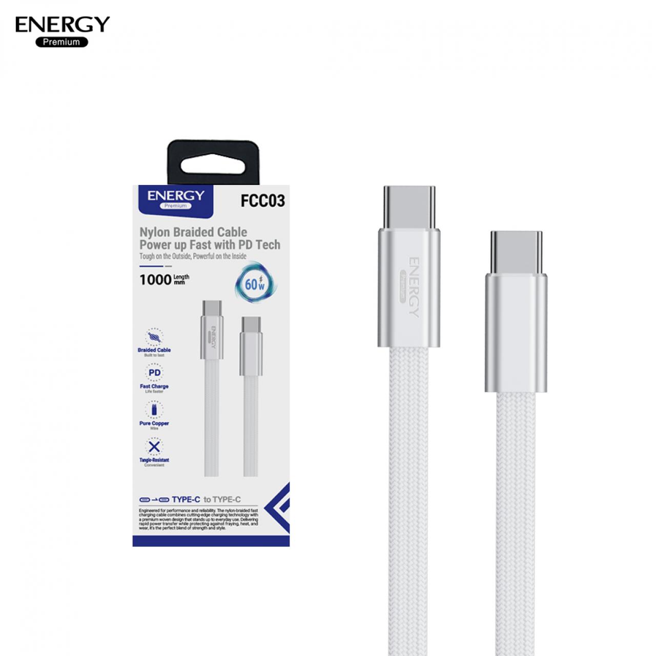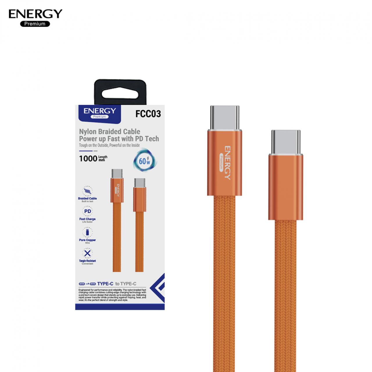 สายชาร์จ FC03 ชาร์จเร็ว PD30-60W สายไนลอนถักเส้นแบน