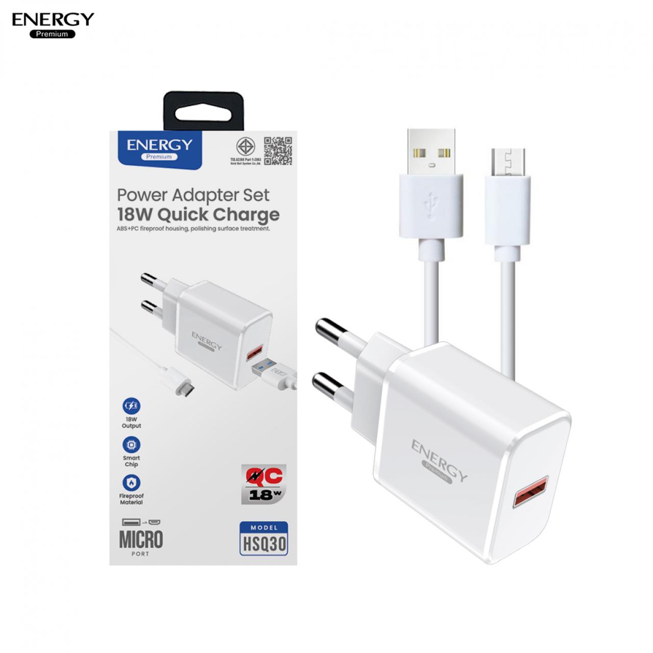 อะแดปเตอร์พร้อมสาย HSQ30 ชาร์จเร็ว QC3.0/18W 1 พอร์ต
